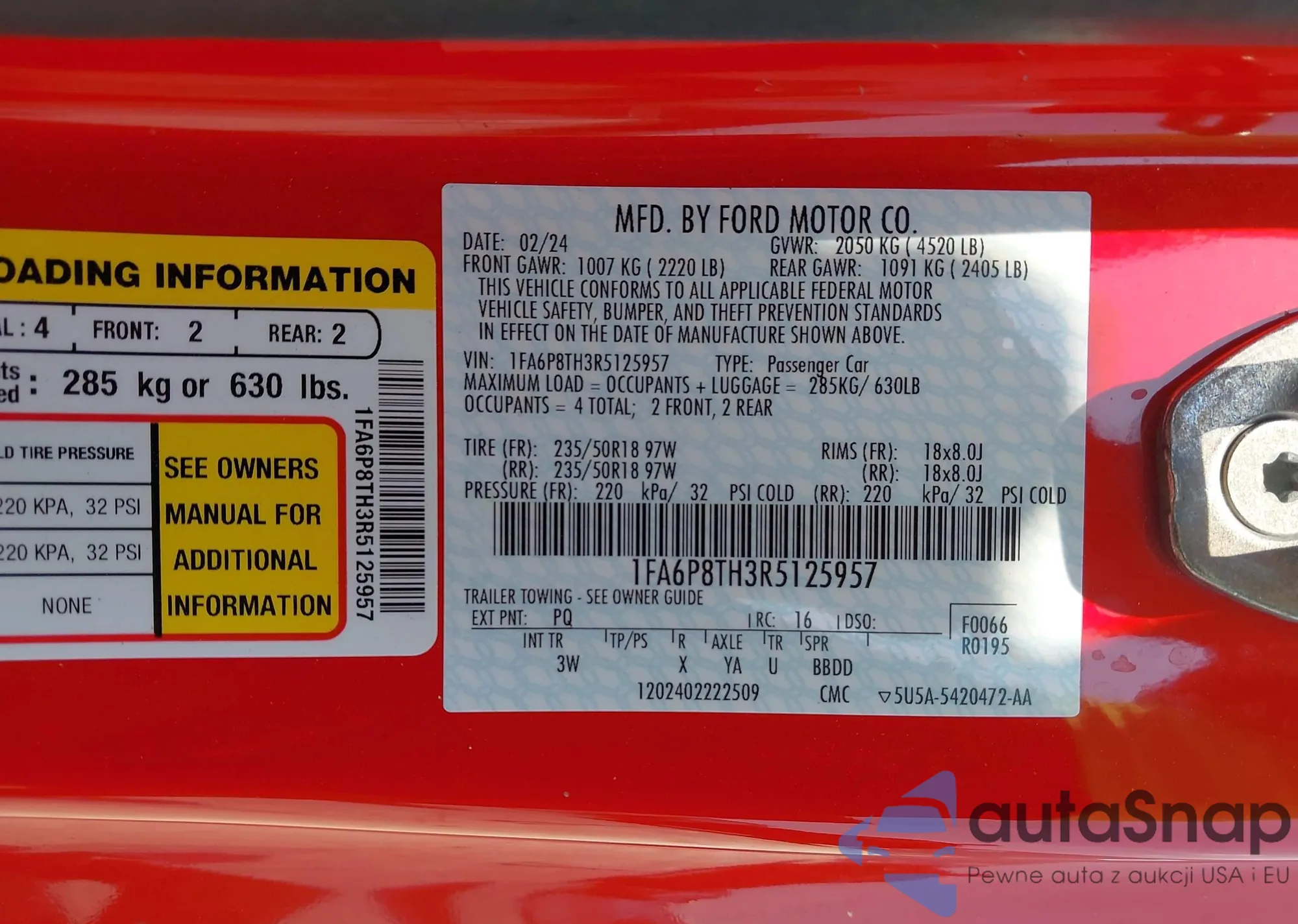 • VIN 1FA6P8TH3R5125957