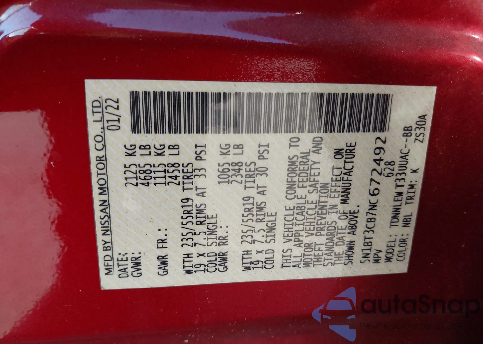 • VIN 5N1BT3CB7NC672492