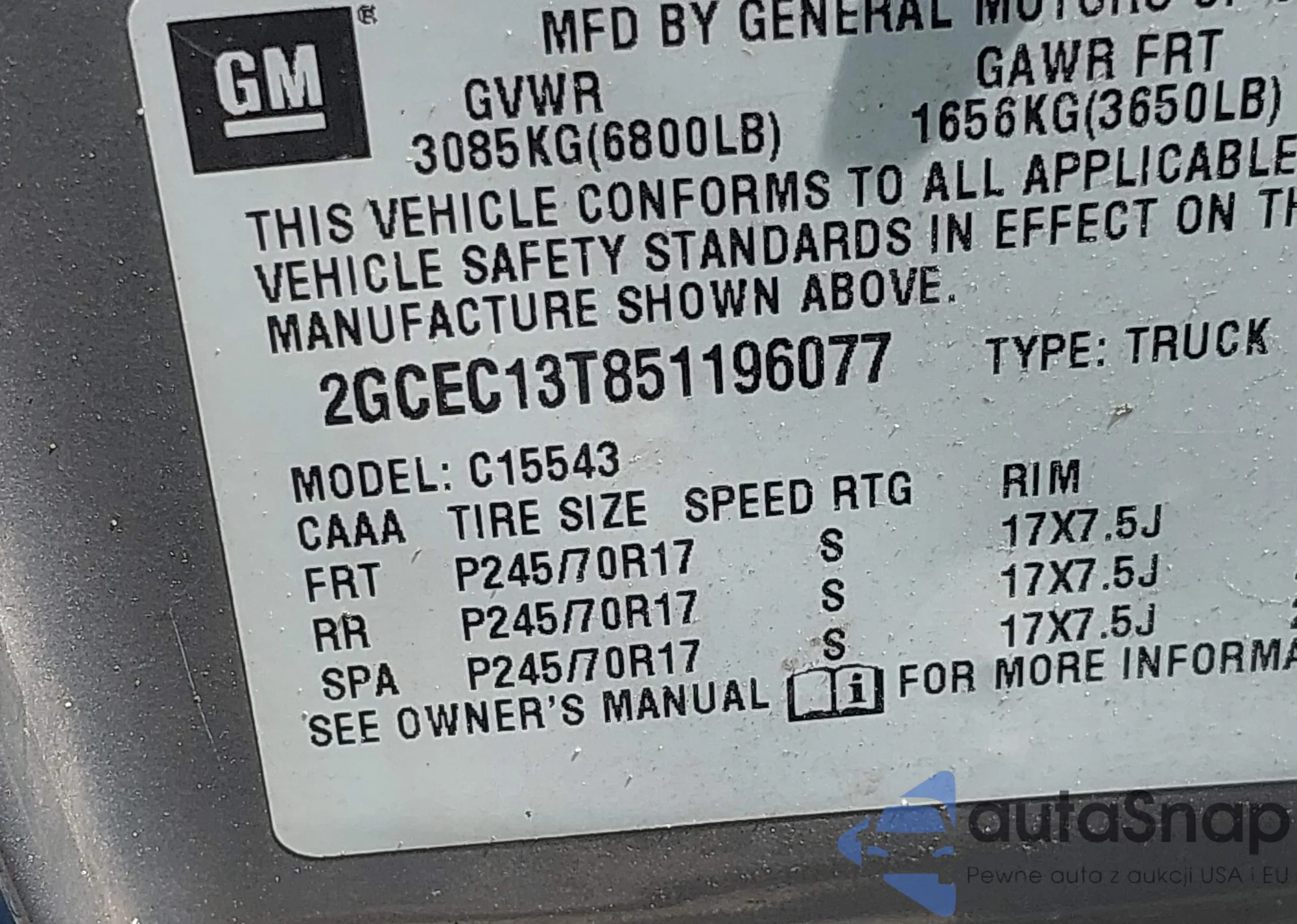 • VIN 2GCEC13T851196077