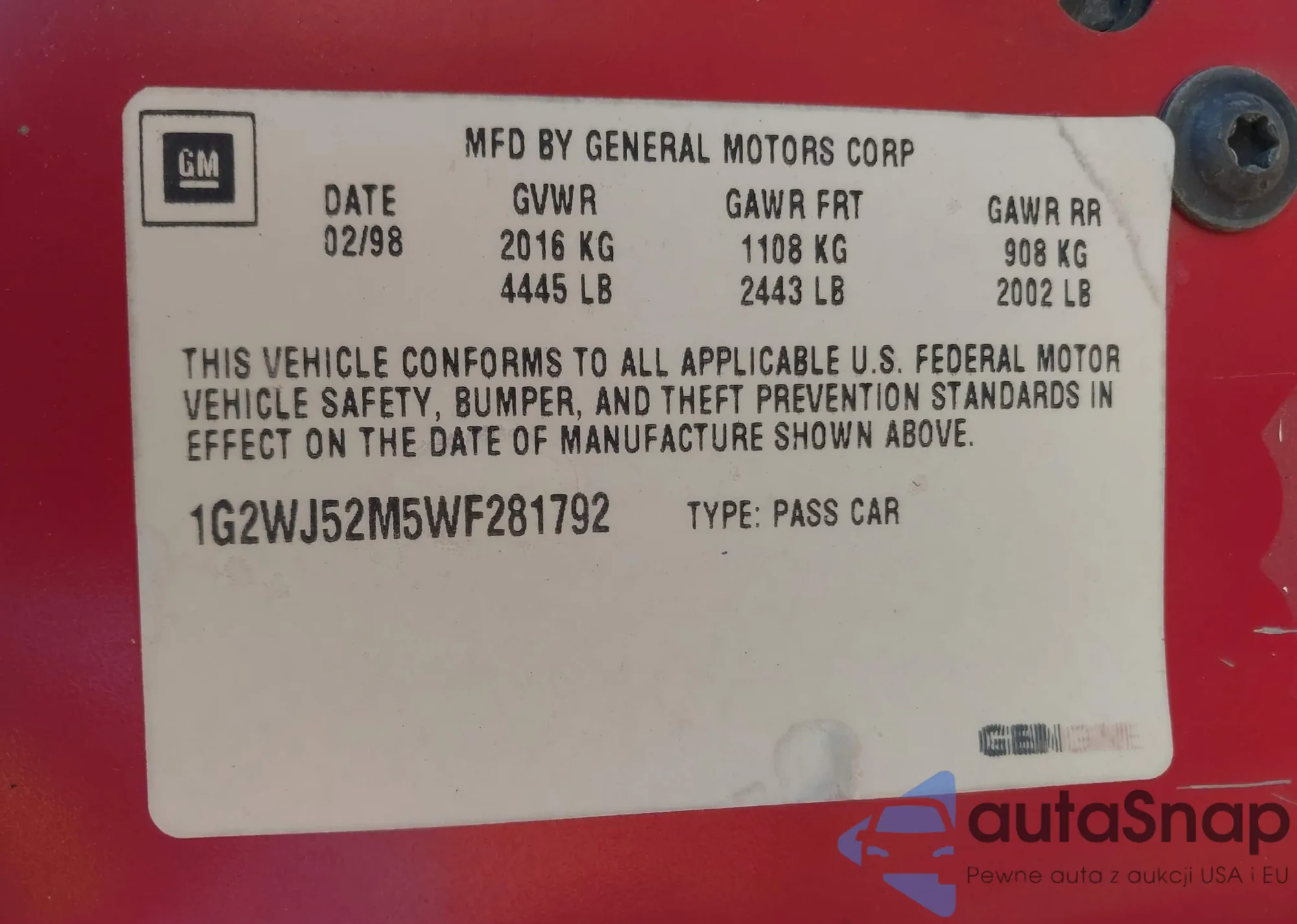 LOT: 43192298 VIN: 3PCAJ5BA3MF124453