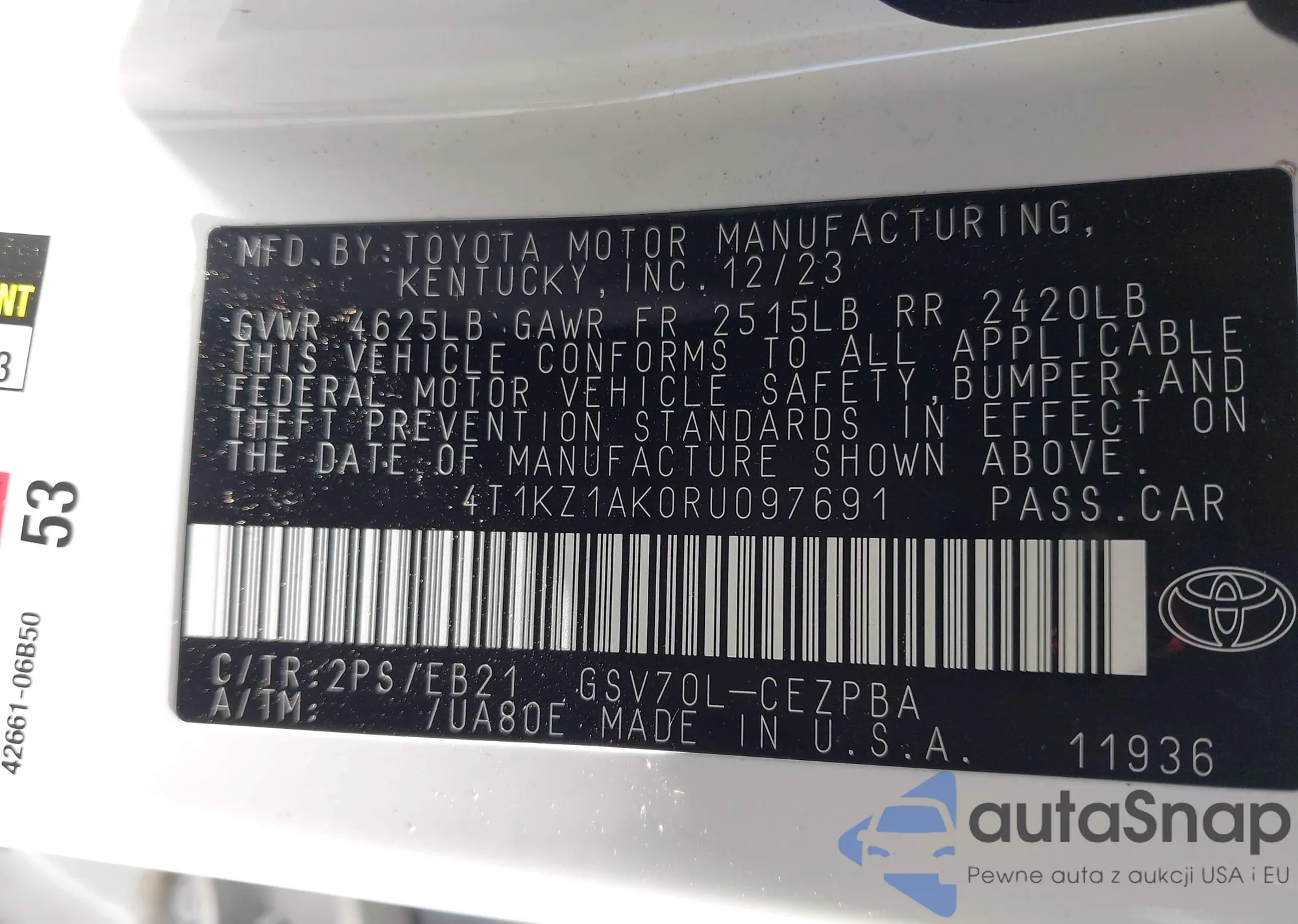 LOT: 43167356 VIN: 4T1KZ1AK0RU097691