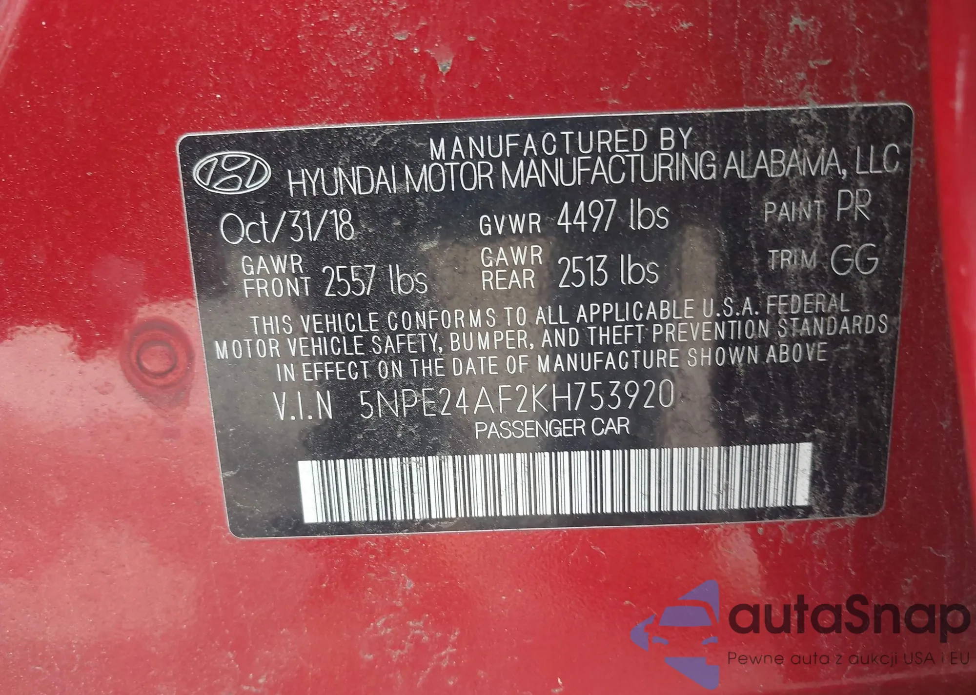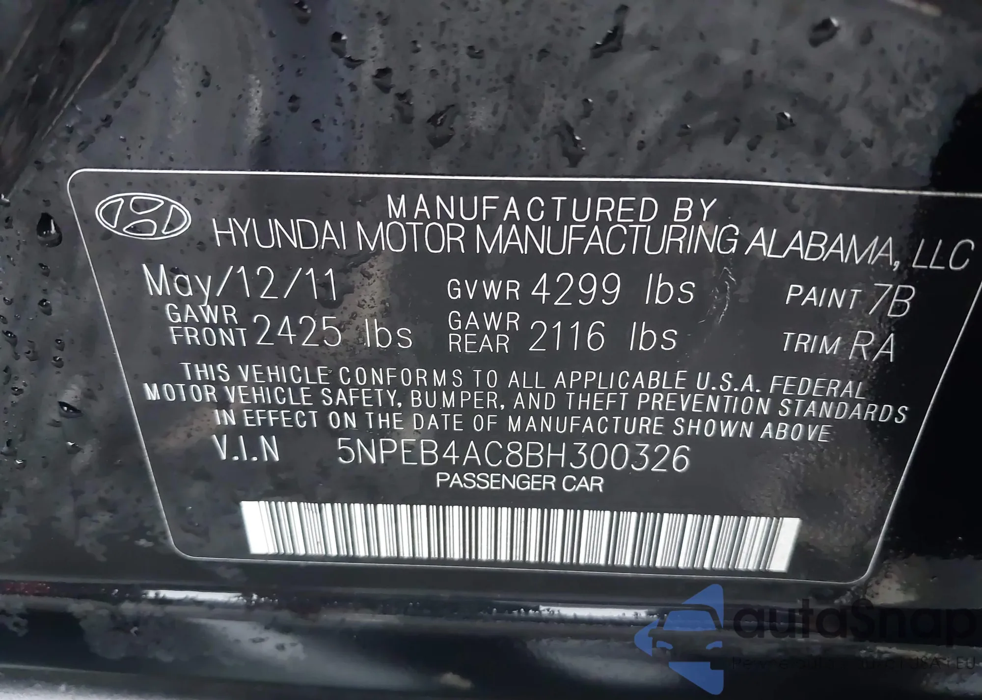 • VIN 5NPEB4AC8BH300326