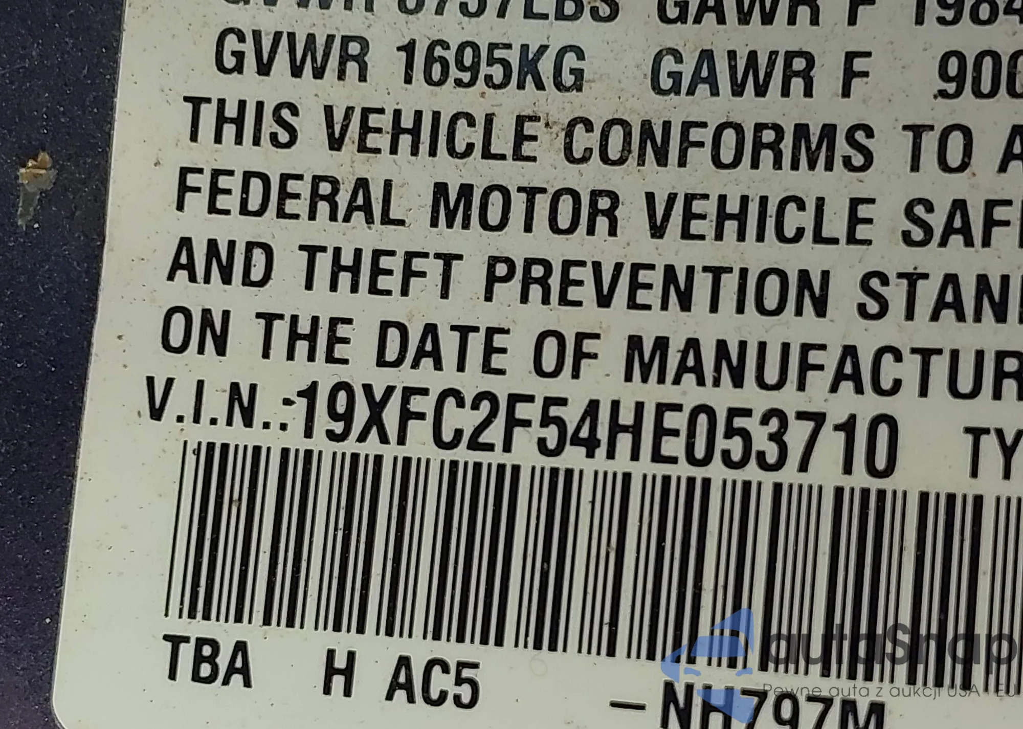 • VIN 19XFC2F54HE053710