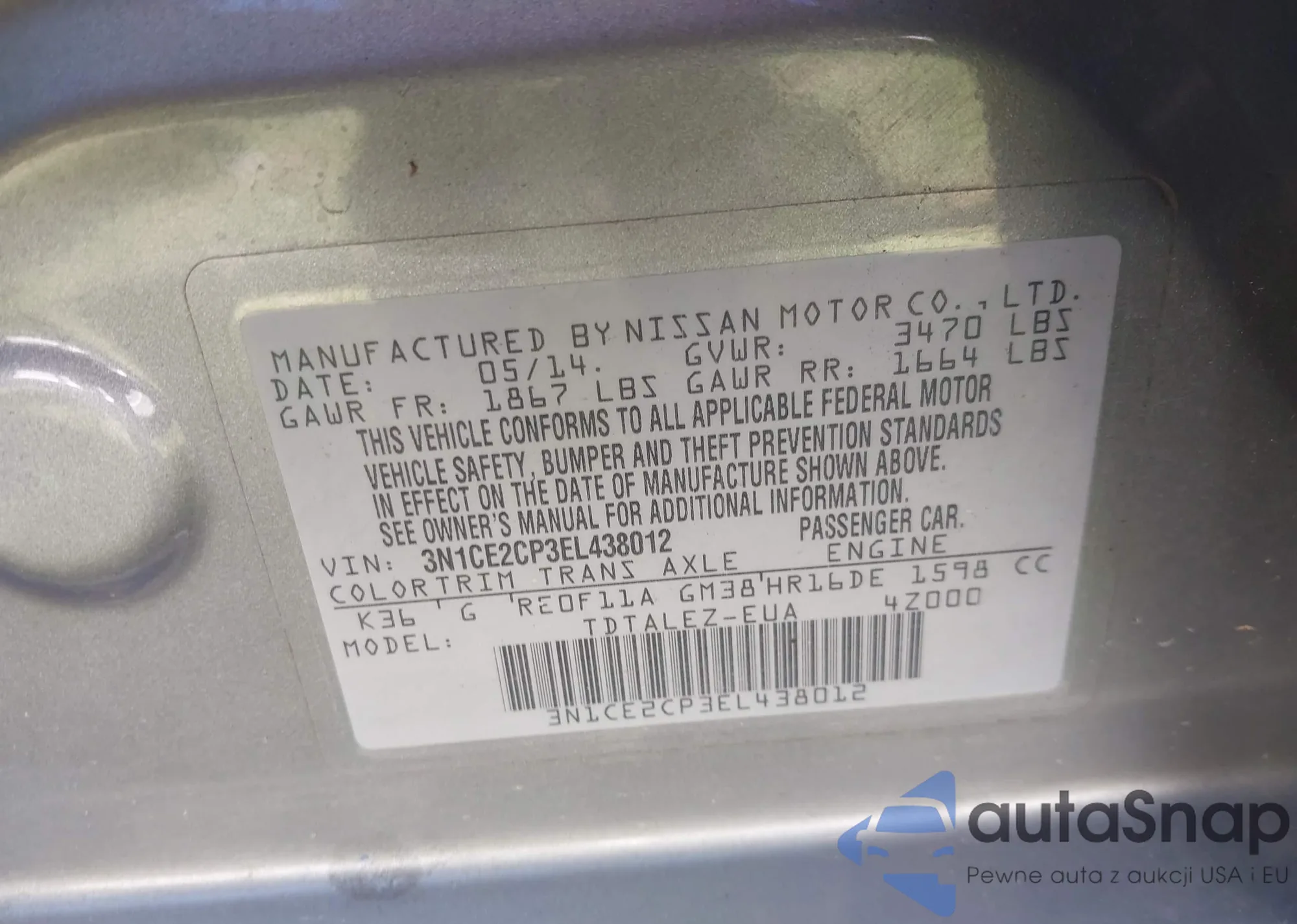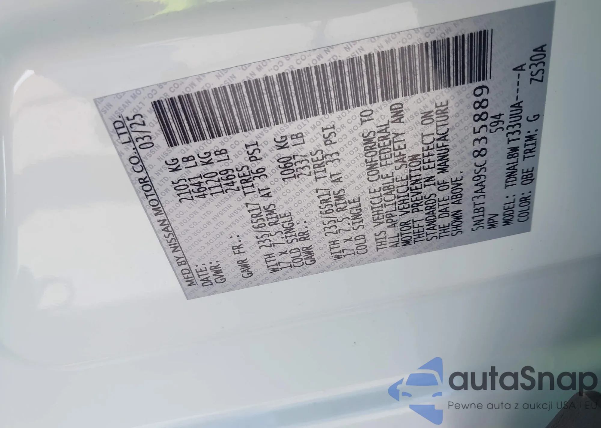 LOT: 42817655 VIN: 5N1BT3AA9SC835889