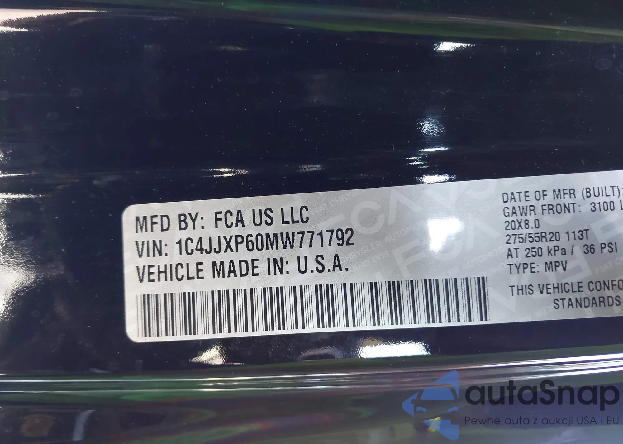 LOT: 43346245 VIN: 1C4JJXP60MW771792