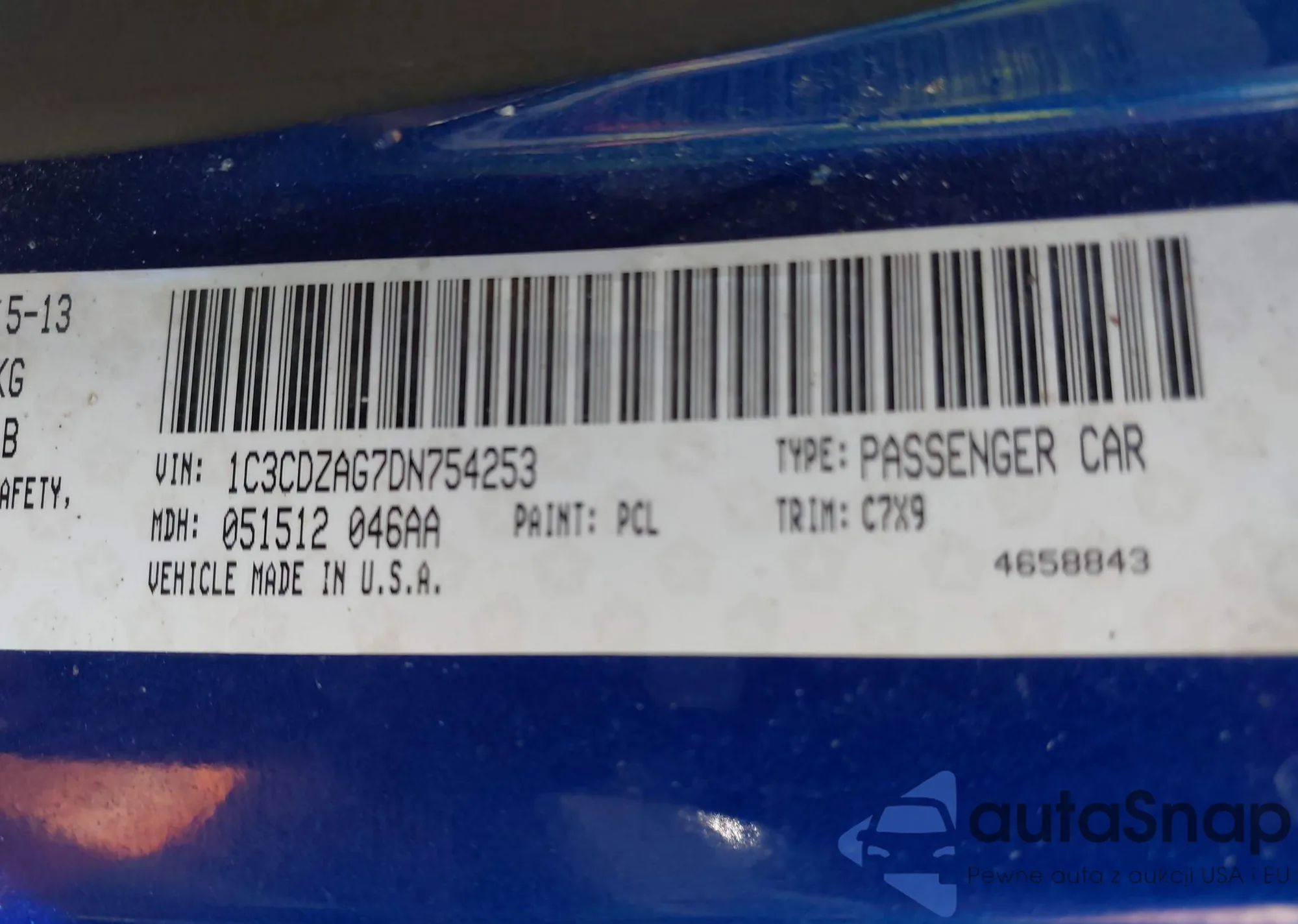 • VIN 1C3CDZAG7DN754253