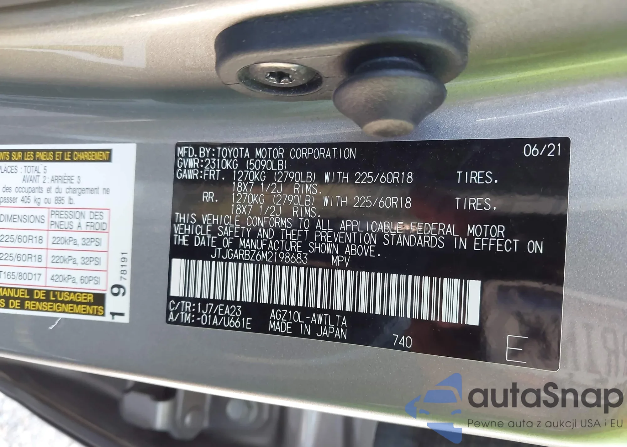 LOT: 43308997 VIN: JTJGARBZ6M2198683