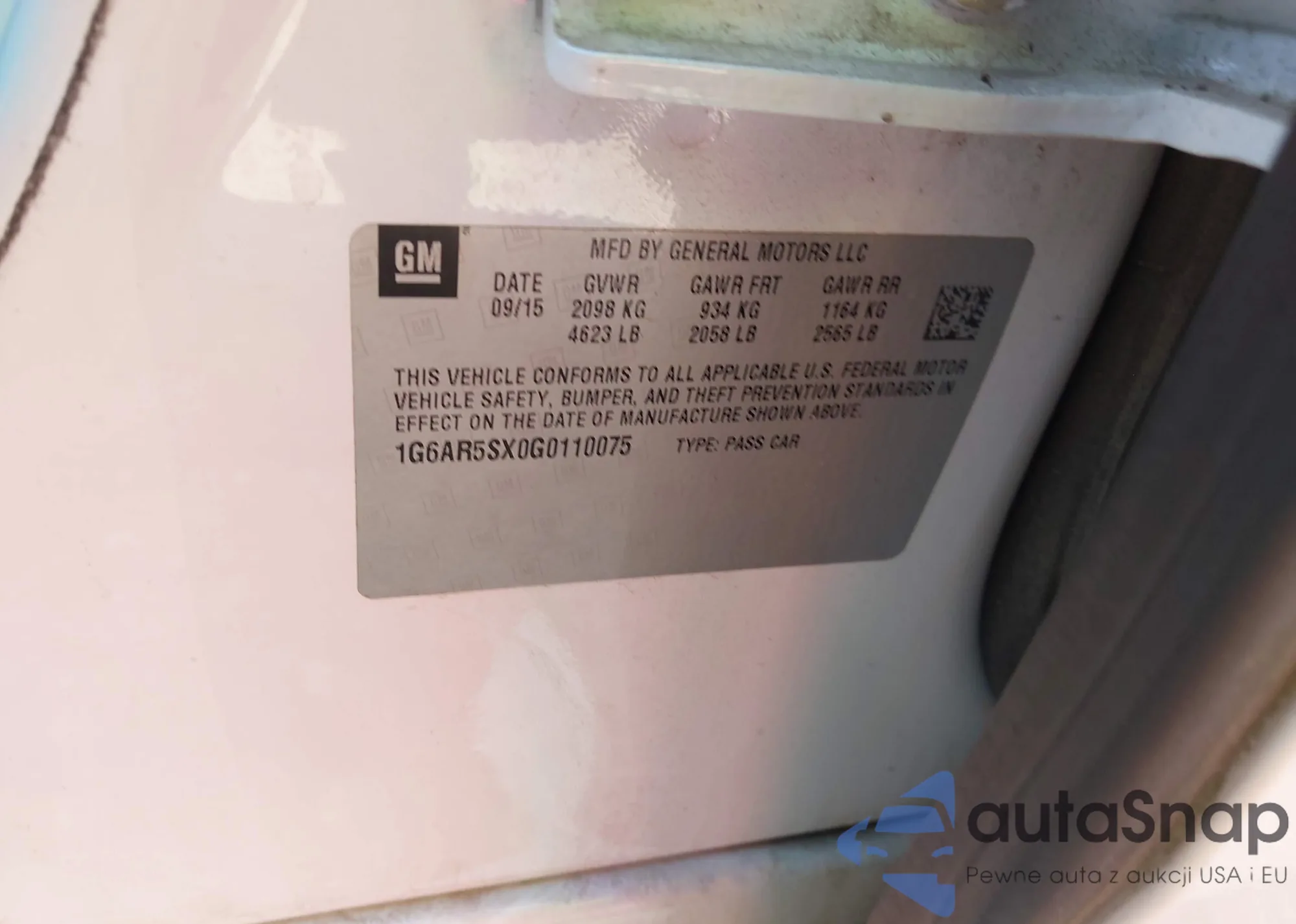 • VIN 1G6AR5SX0G0110075