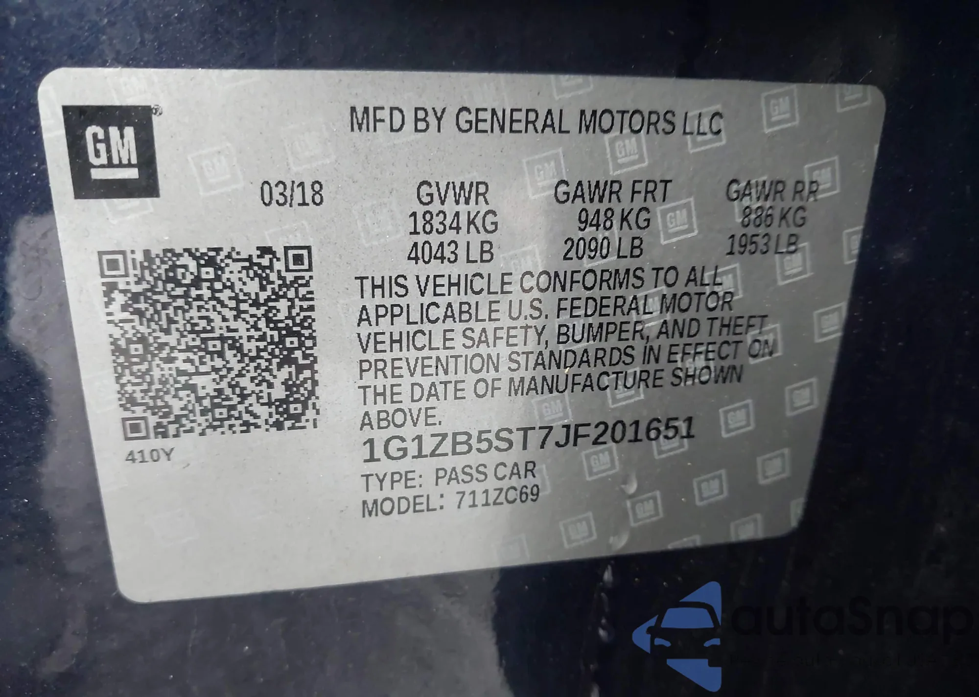 • VIN 1G1ZB5ST7JF201651