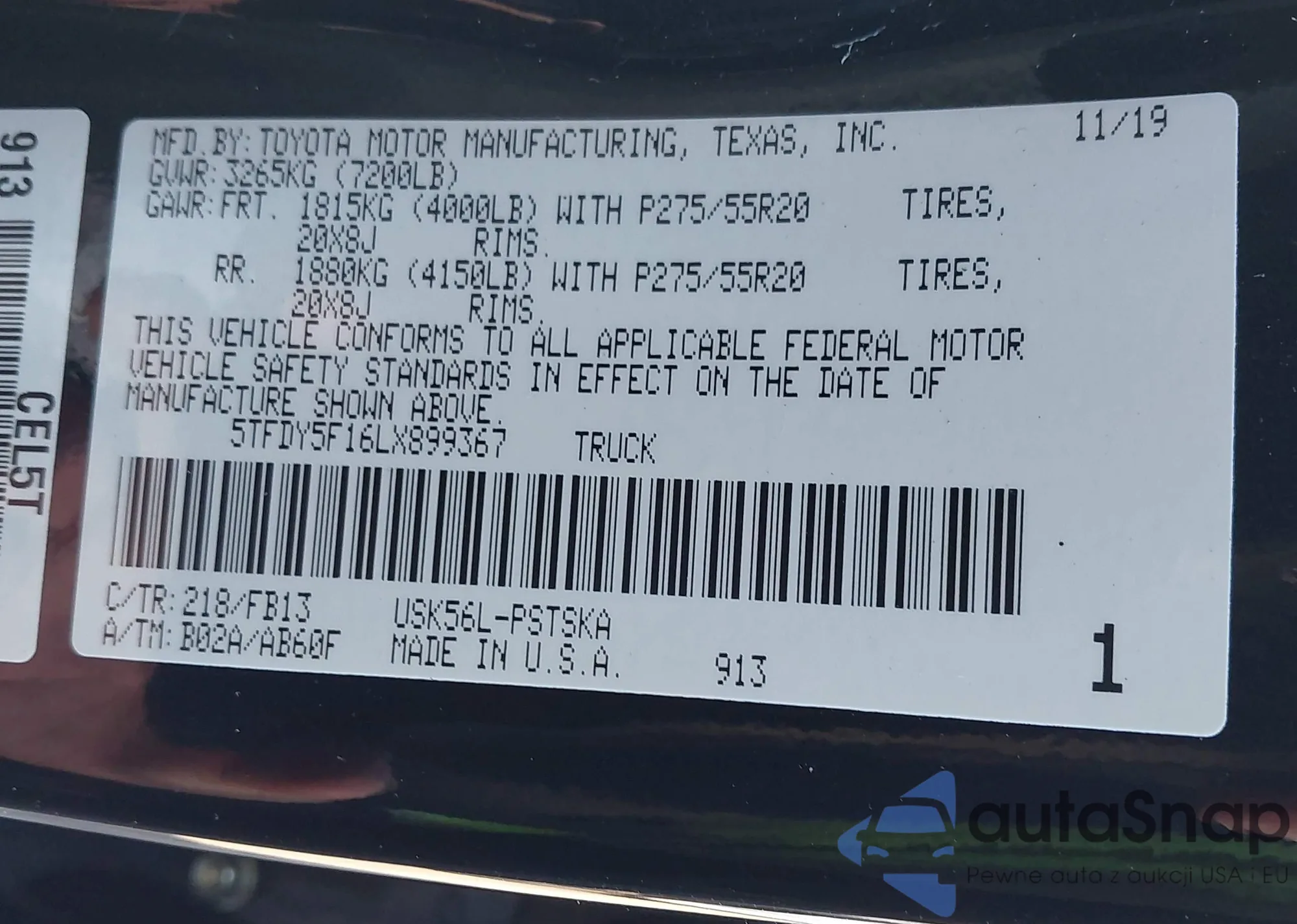 LOT: 43402611 VIN: 5TFDY5F16LX899367