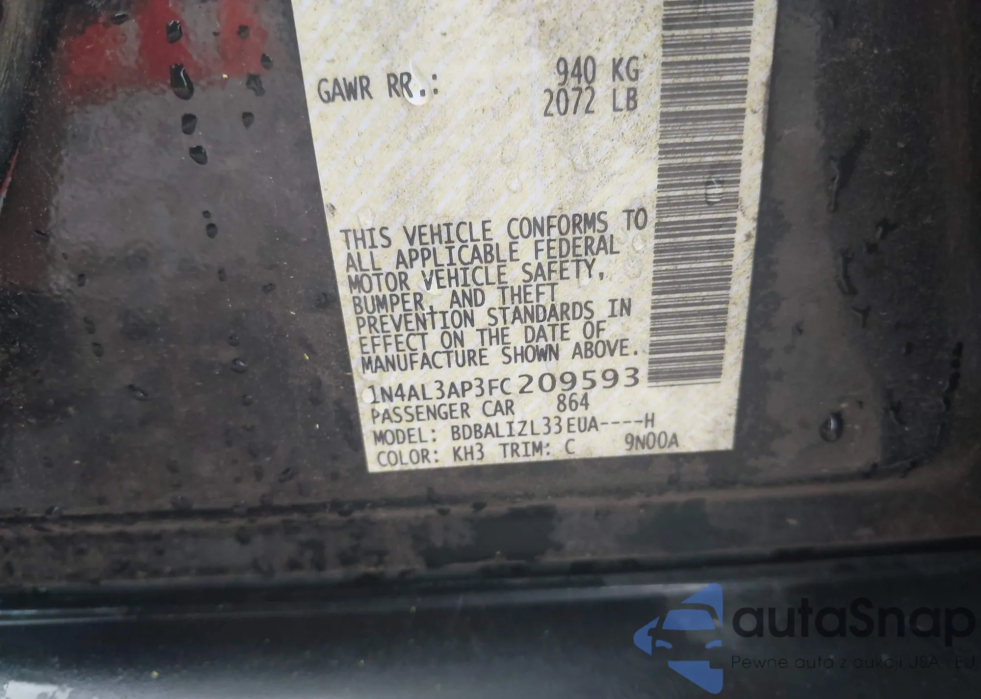 • VIN 1N4AL3AP3FC209593