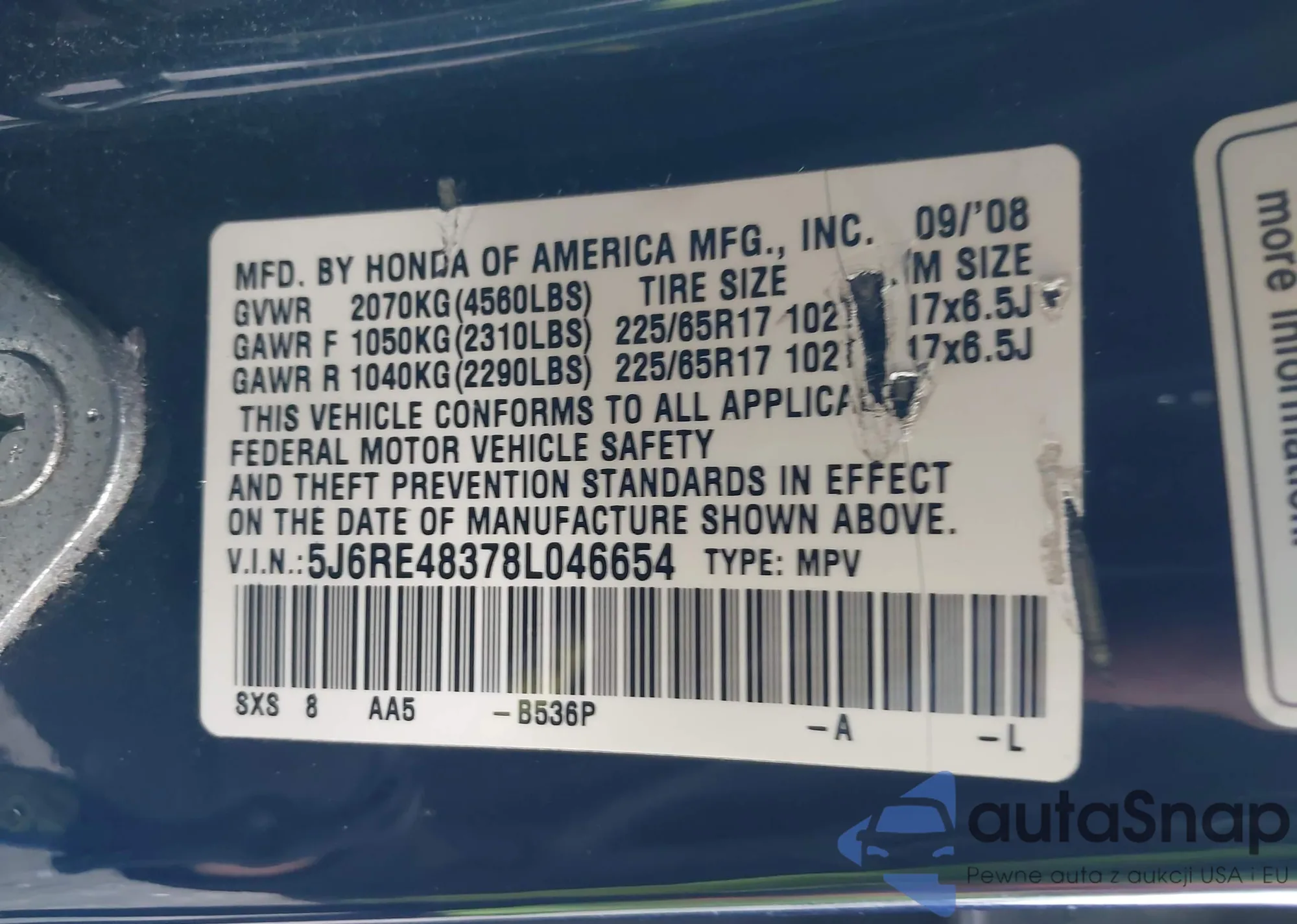 • VIN JH4DC54856S008242