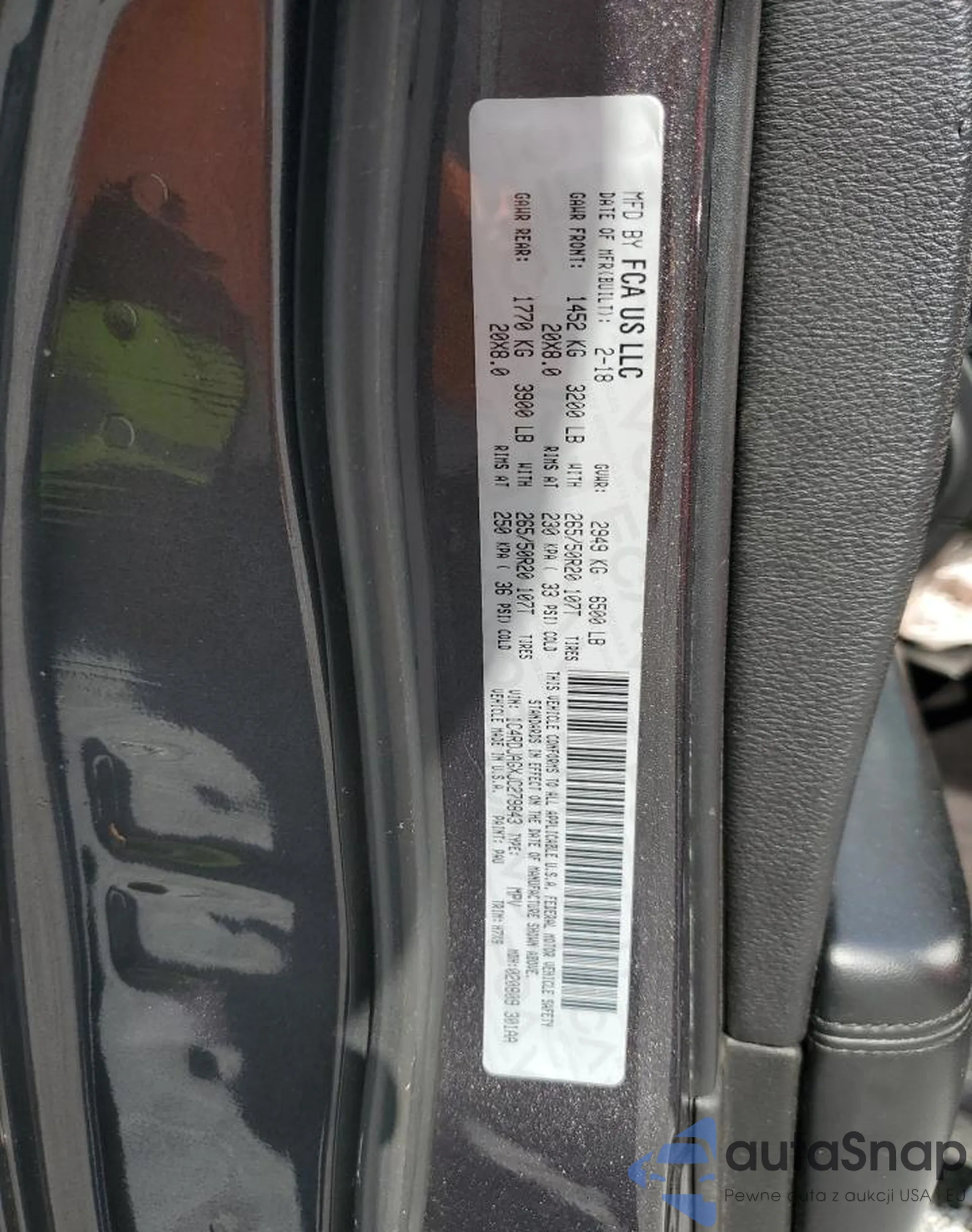 LOT: 57187615 VIN: 1C4RDJAGXJC279843