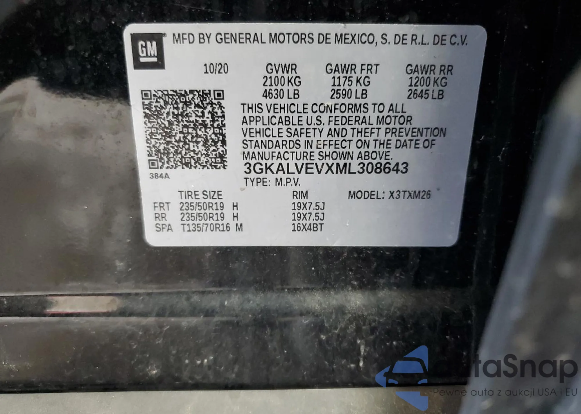 LOT: 71613355 VIN: 3GKALVEVXML308643