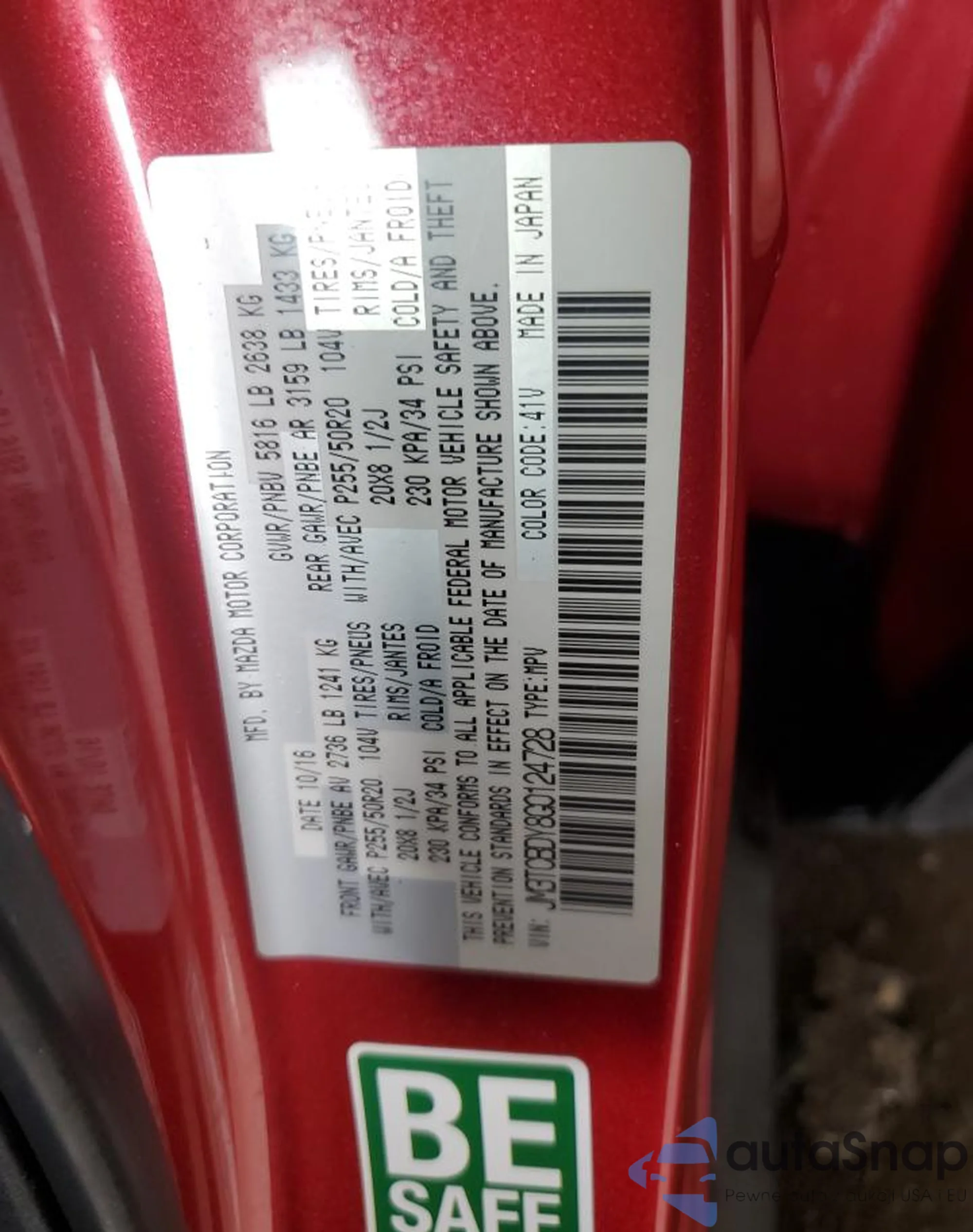 • VIN 3VW7S7AT8DM818862