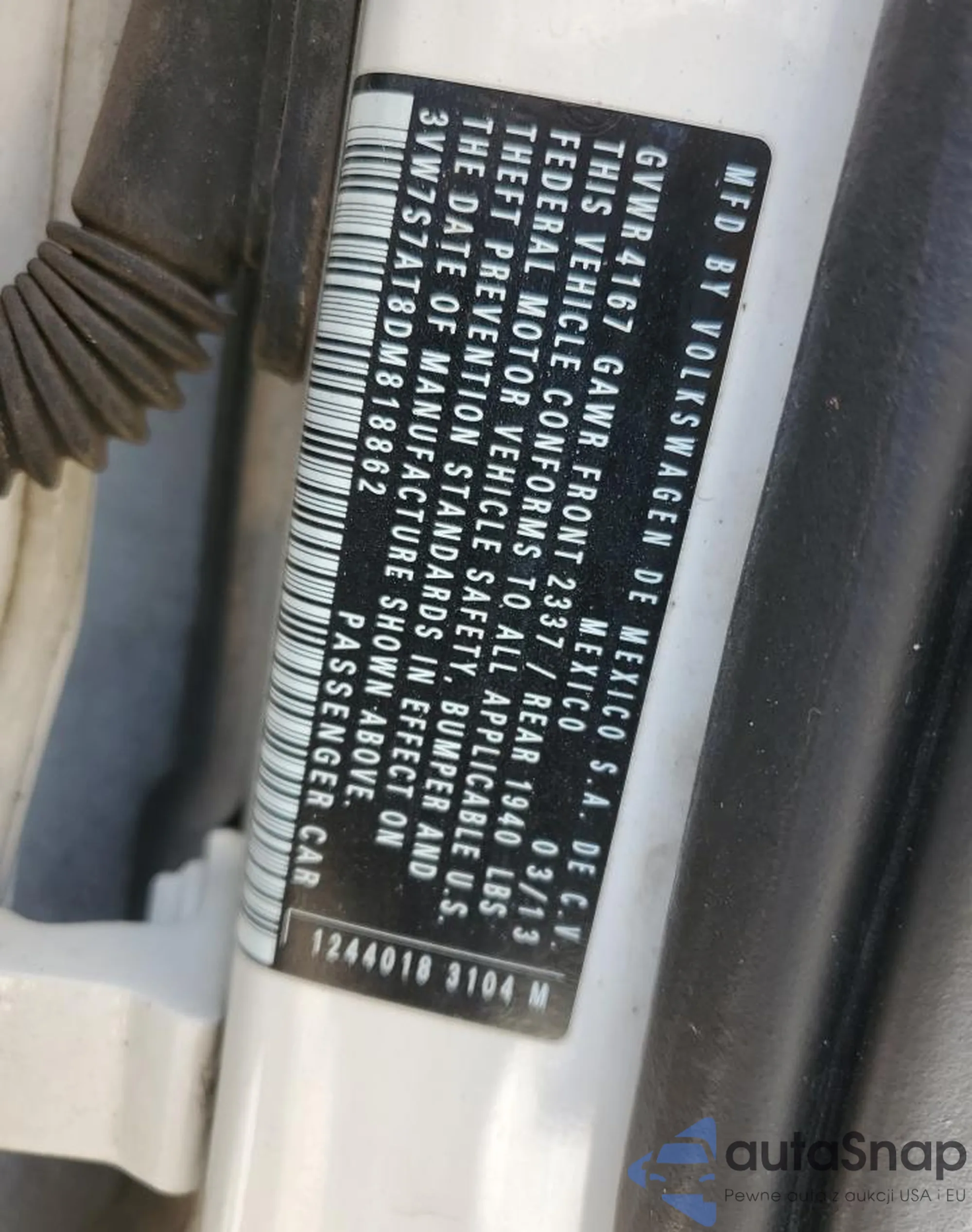 LOT: 70651495 VIN: 3VW7S7AT8DM818862