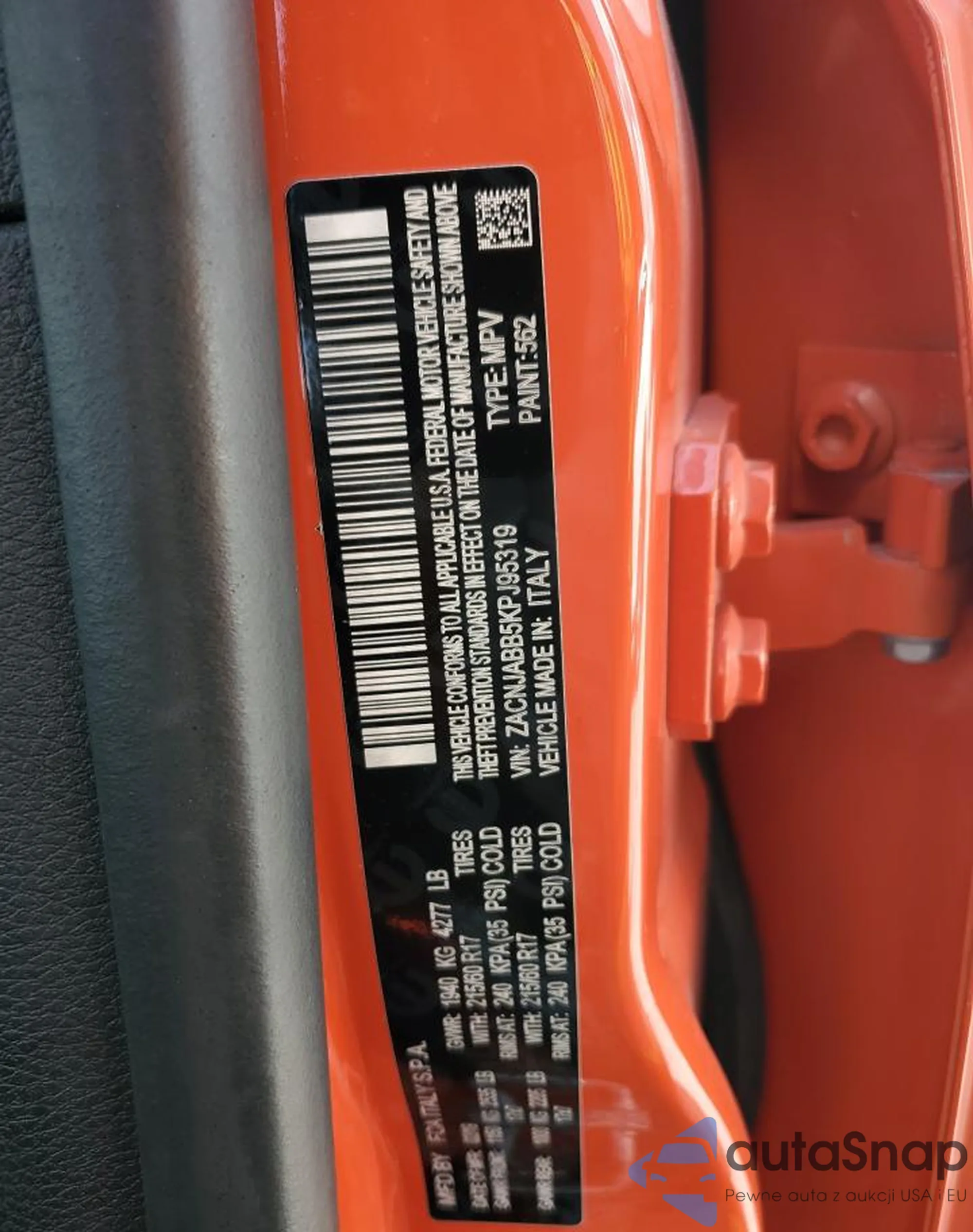 LOT: 81393145 VIN: ZACNJABB5KPJ95319