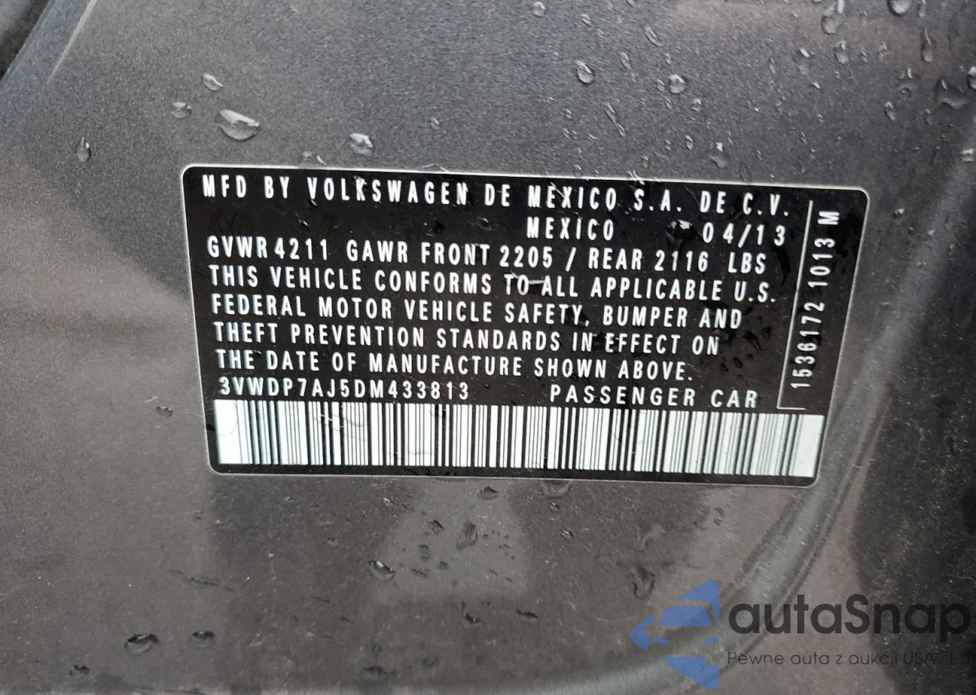 • VIN 3VWDP7AJ5DM433813
