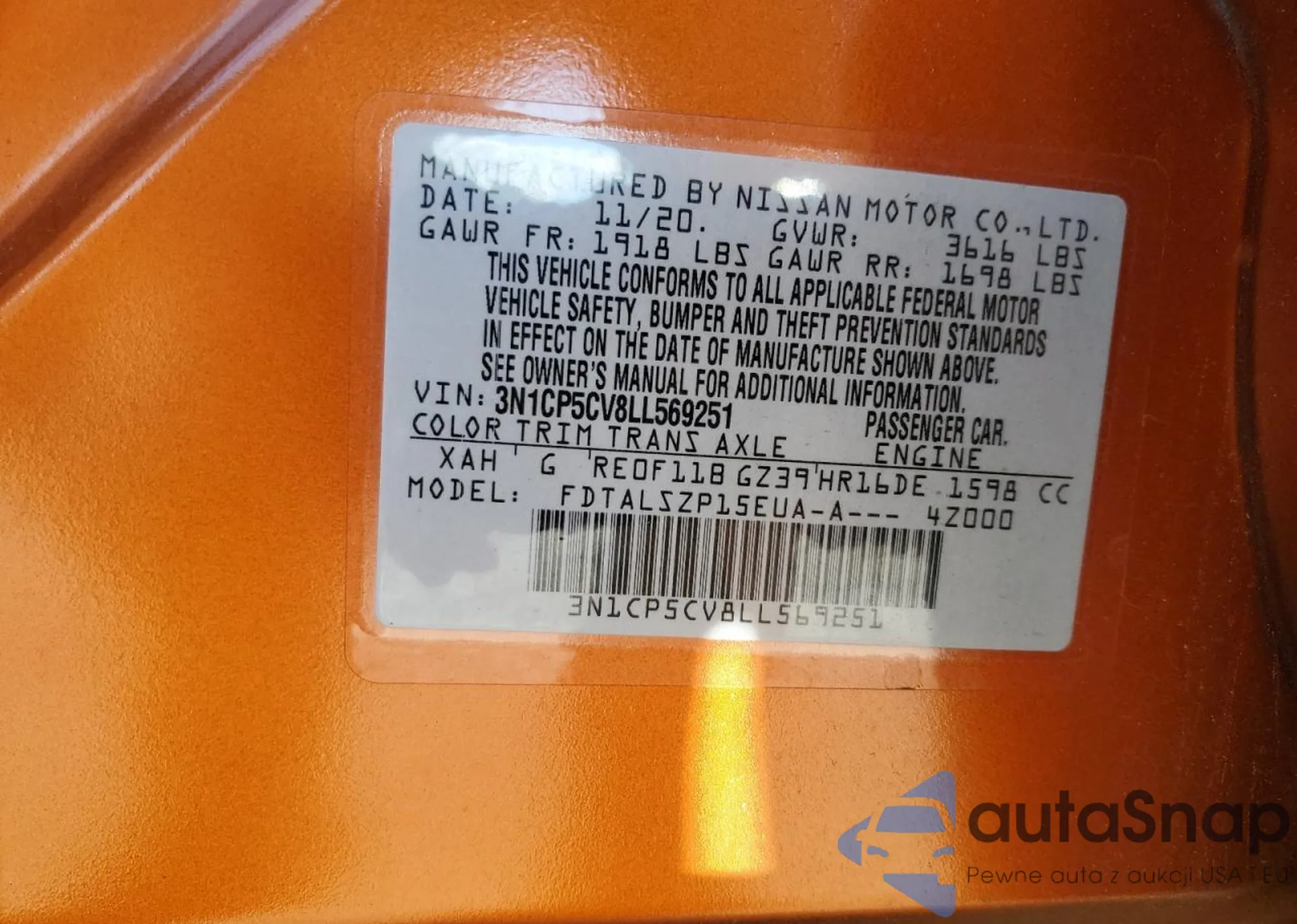 • VIN 3VV3B7AX1LM106522