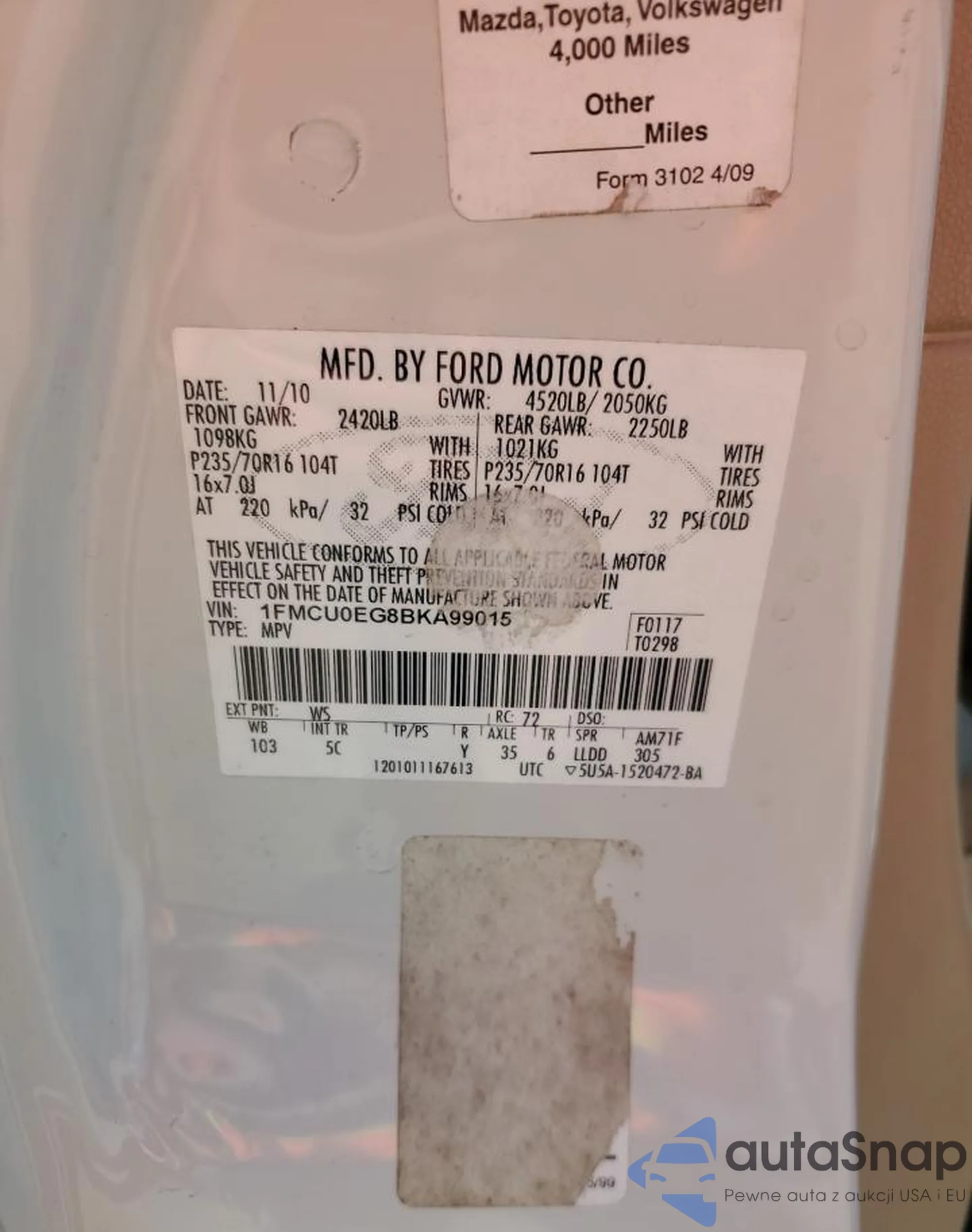 • VIN 1FMCU0EG8BKA99015