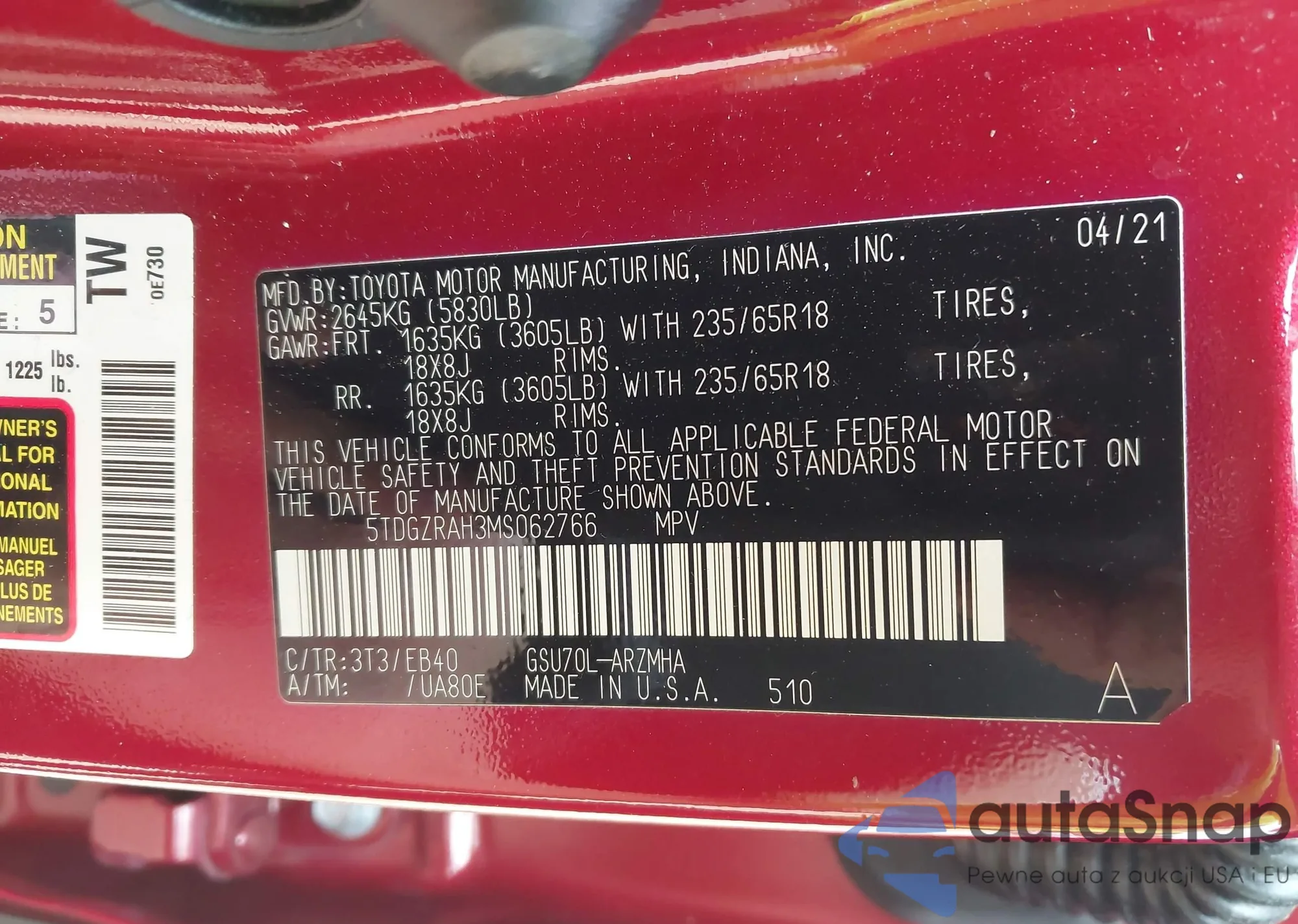 LOT: 43109270 VIN: JTDDPRAEXLJ066386