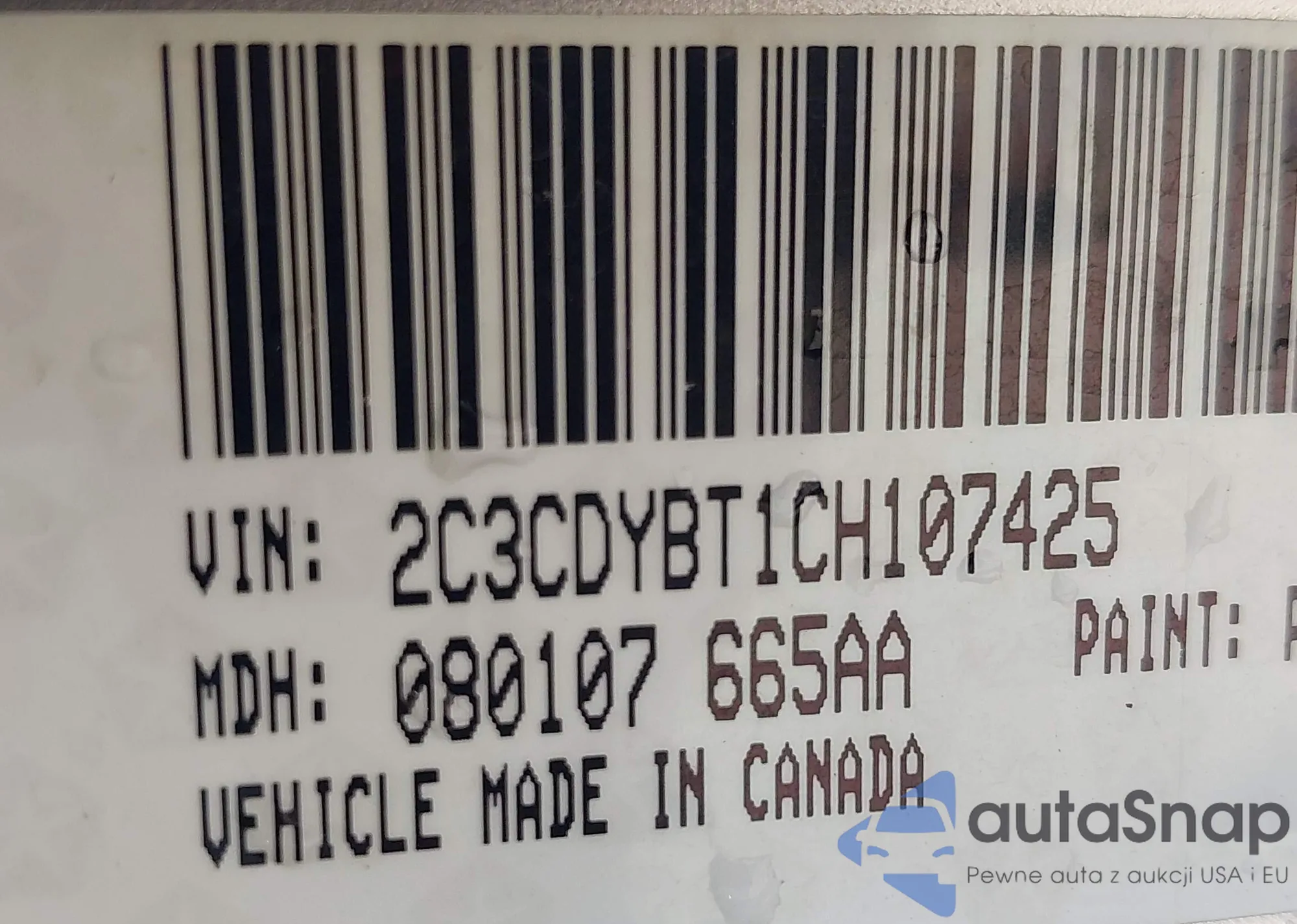 • VIN 2C3CDYBT1CH107425