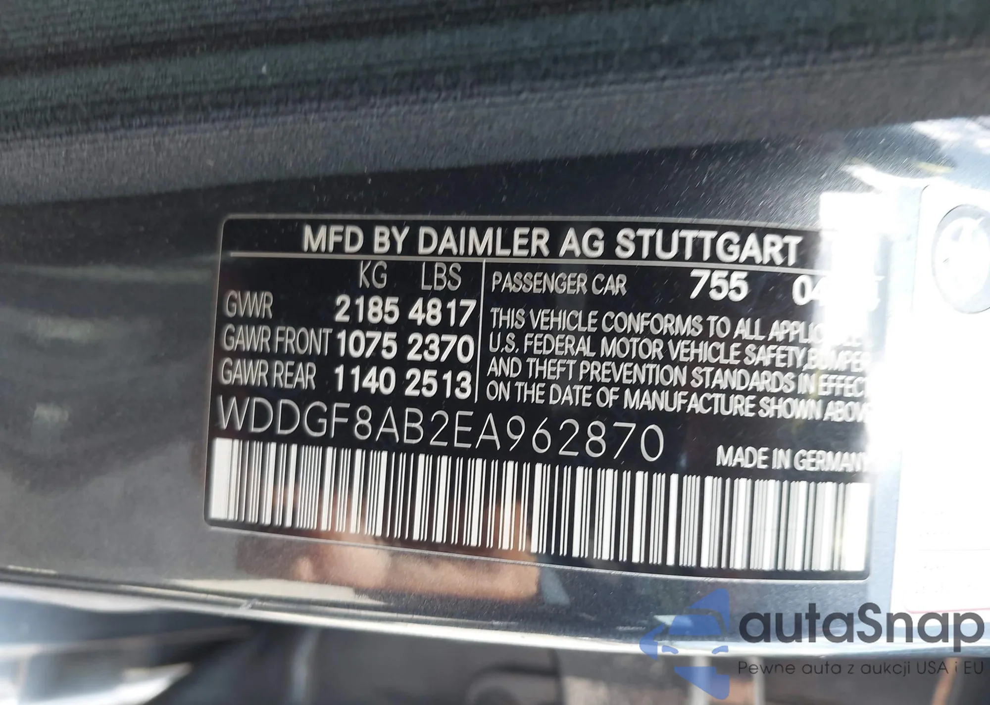 LOT: 43114642 VIN: WDDGF8AB2EA962870