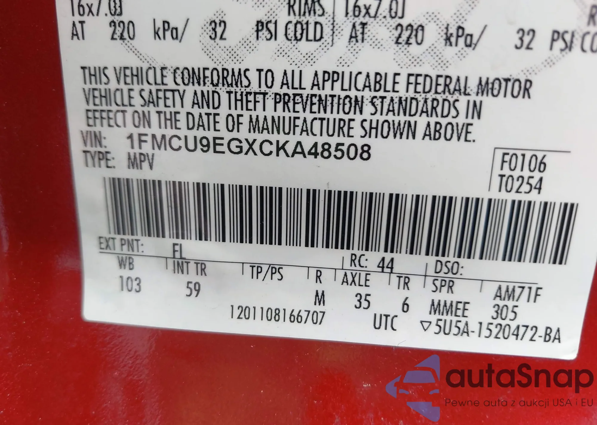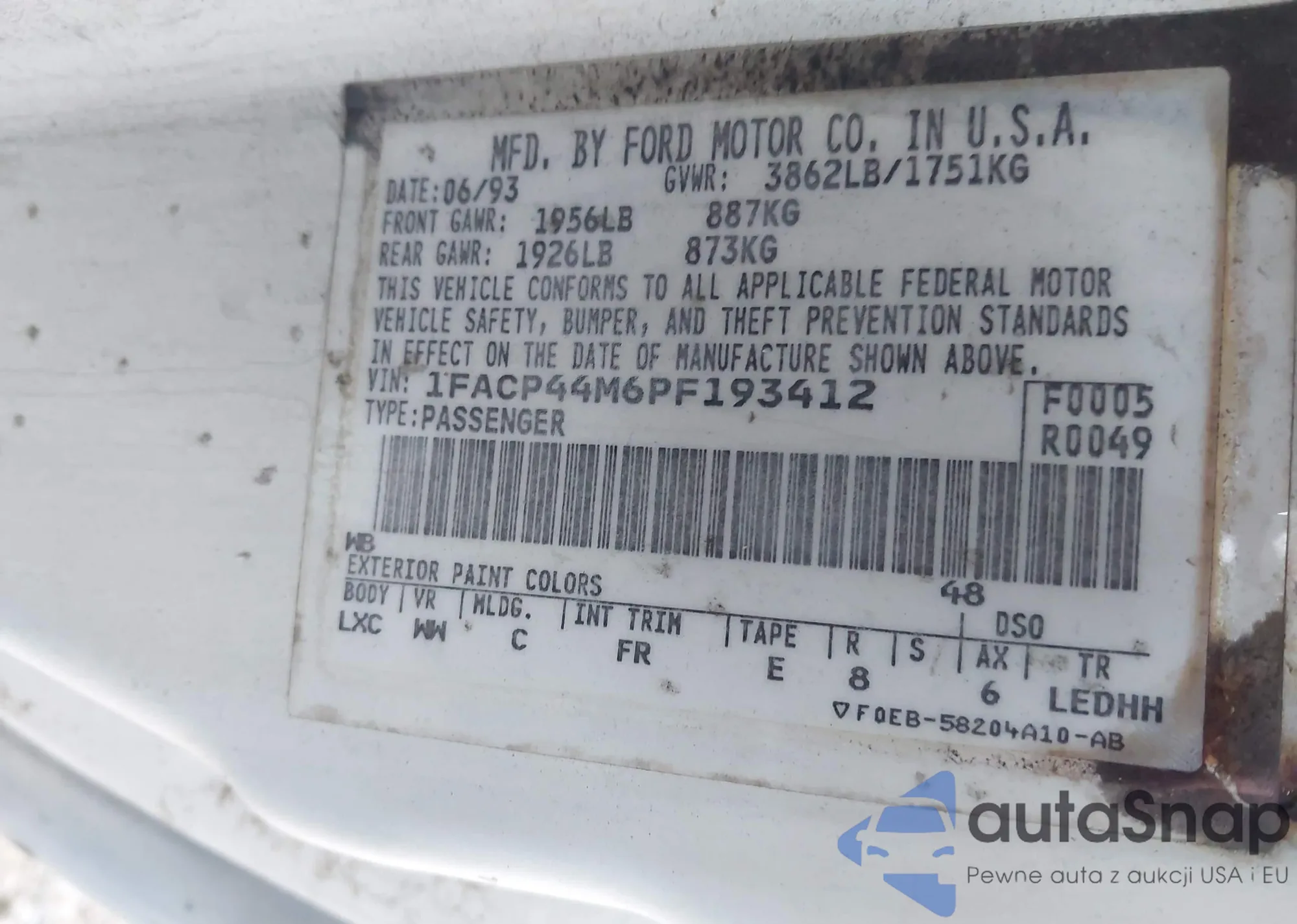 LOT: 43524936 VIN: 1FACP44M6PF193412