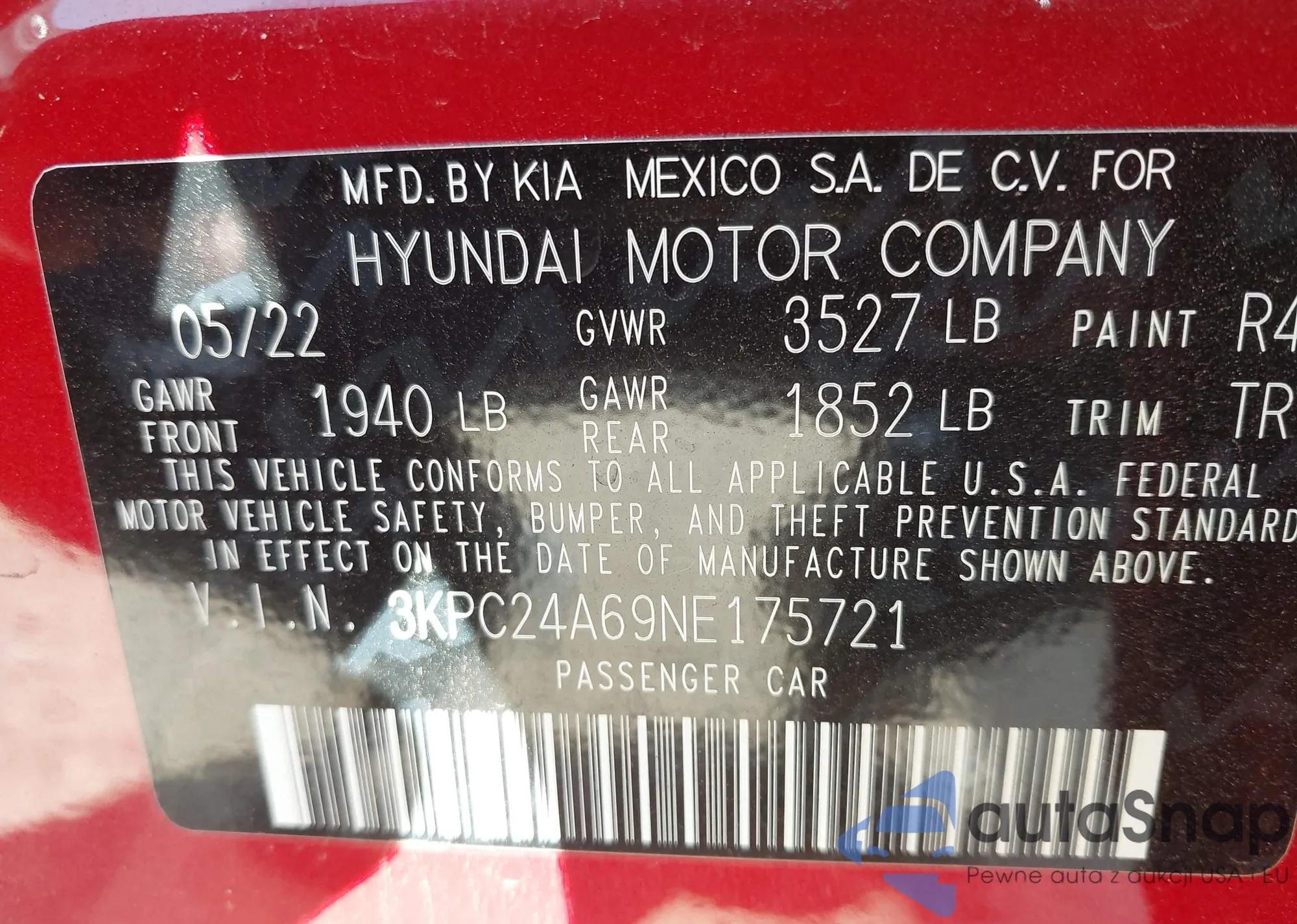 • VIN 3KPC24A69NE175721