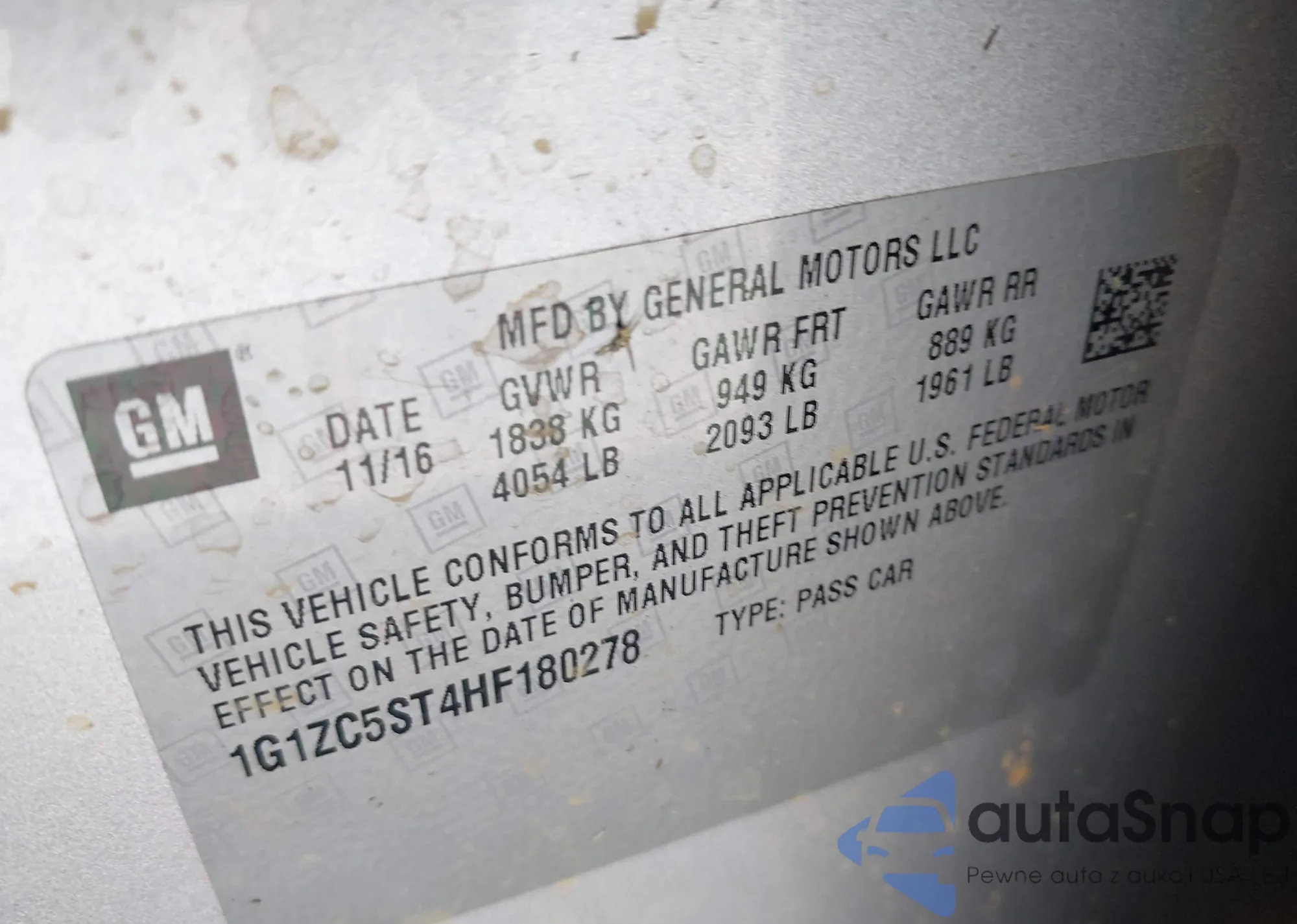 • VIN 1G1ZC5ST4HF180278