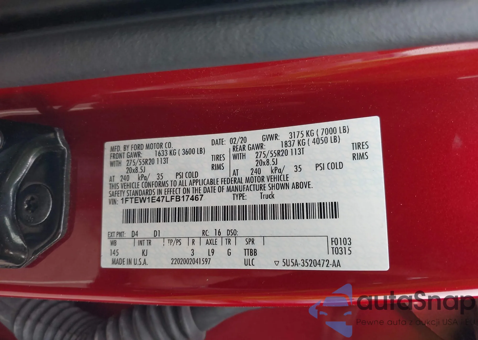 LOT: 42969883 VIN: 1FTEW1E47LFB17467