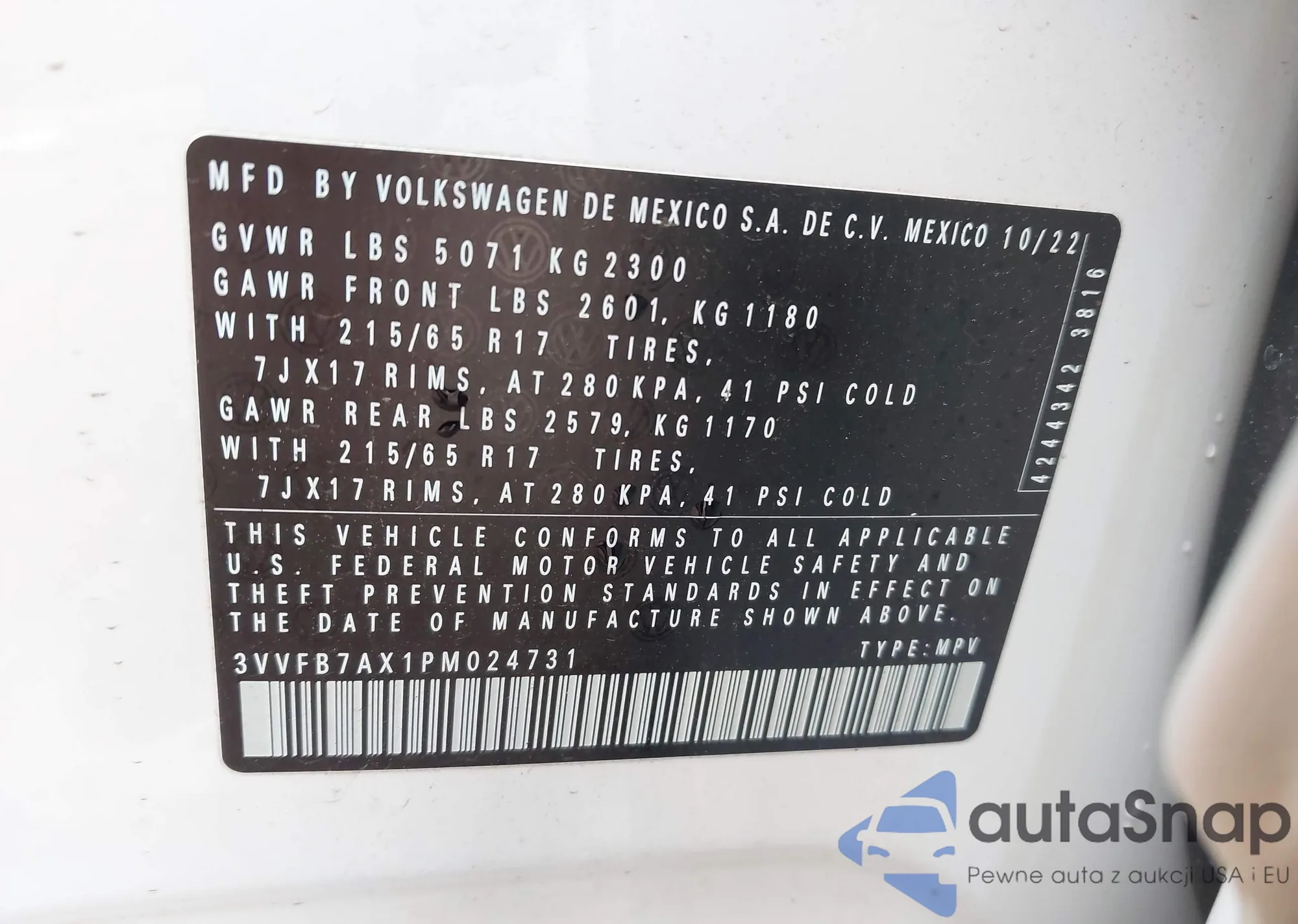 LOT: 42984717 VIN: 3VVFB7AX1PM024731