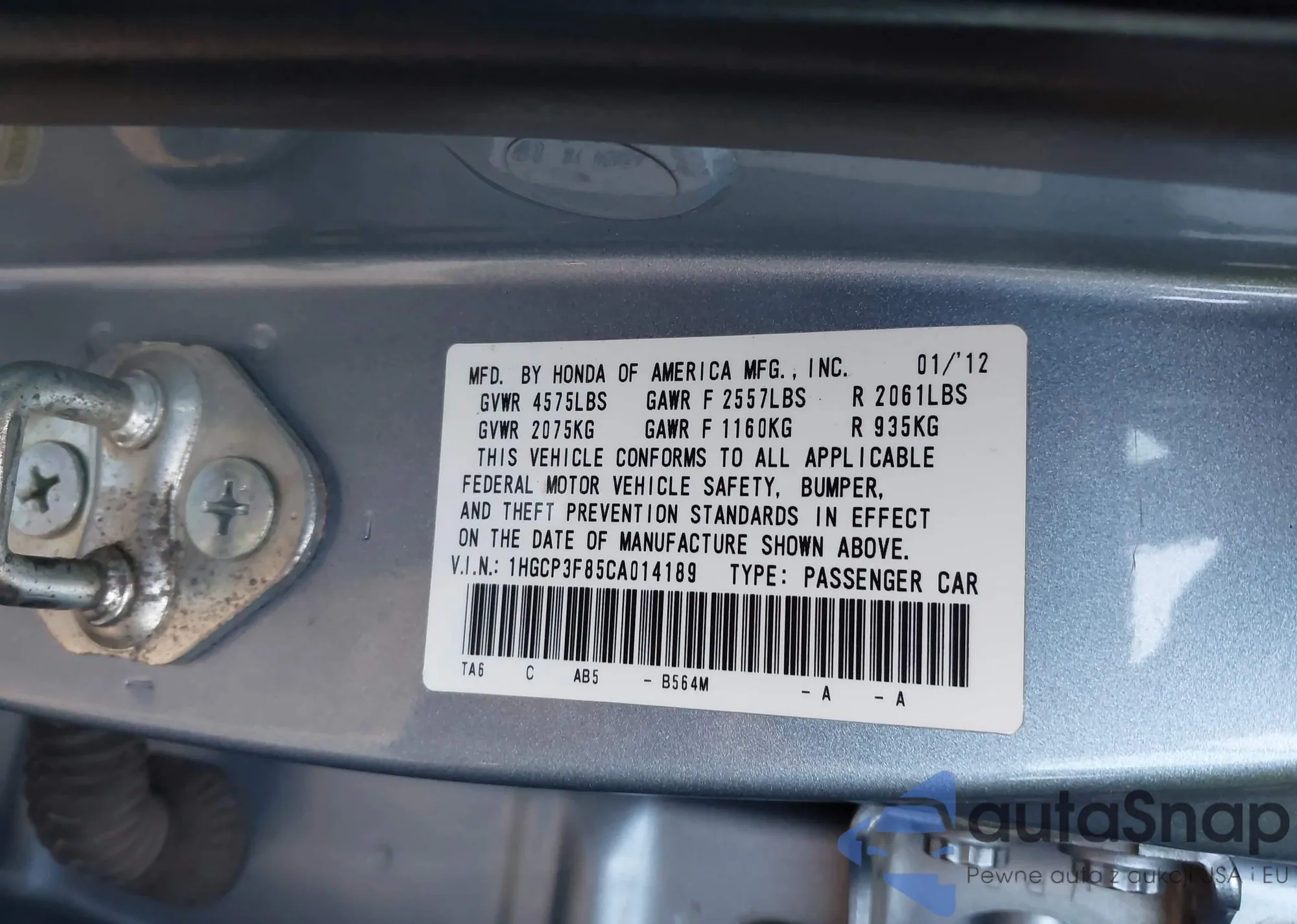 • VIN 5J6RM3H75CL018263