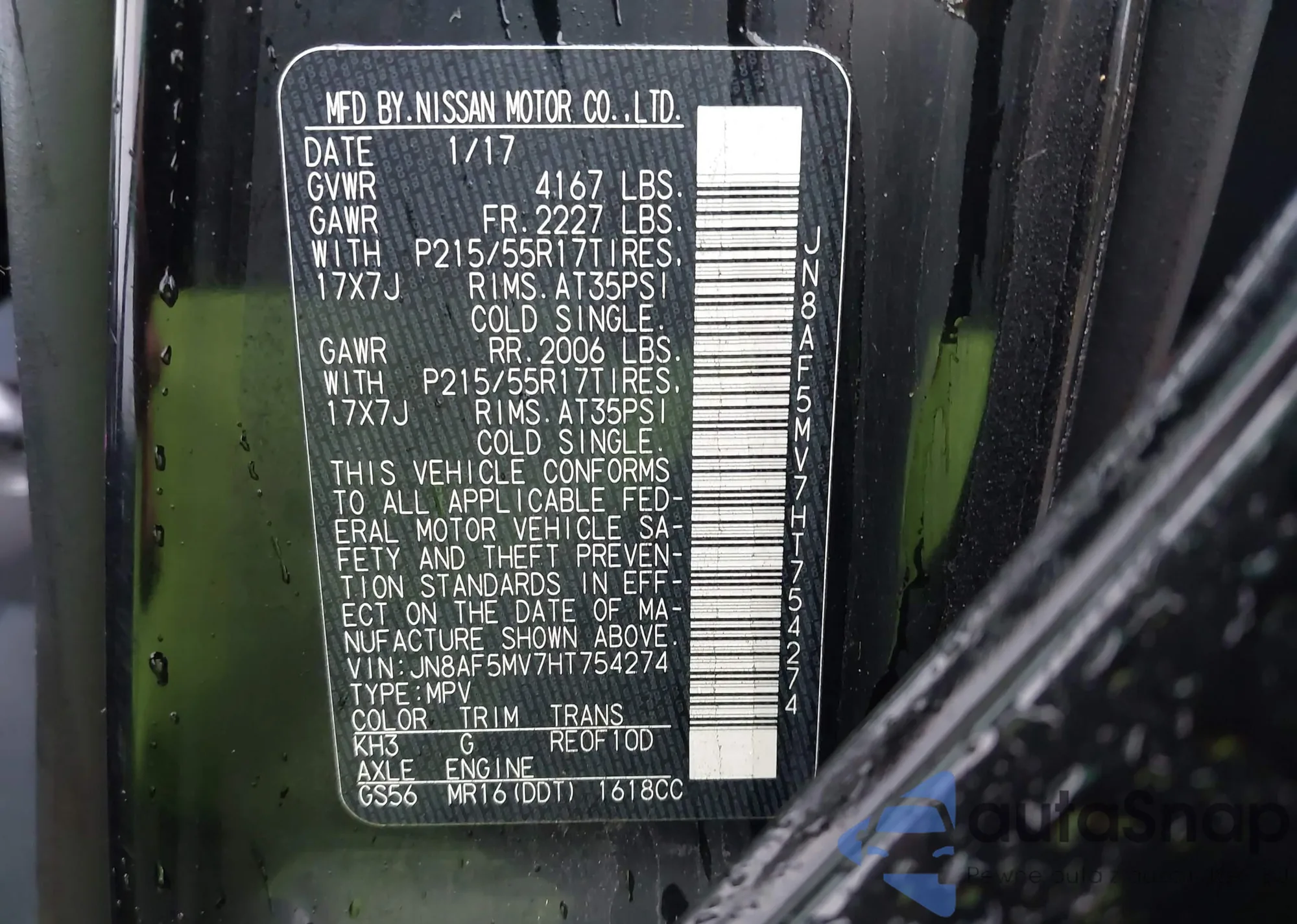 • VIN JN8AF5MV7HT754274