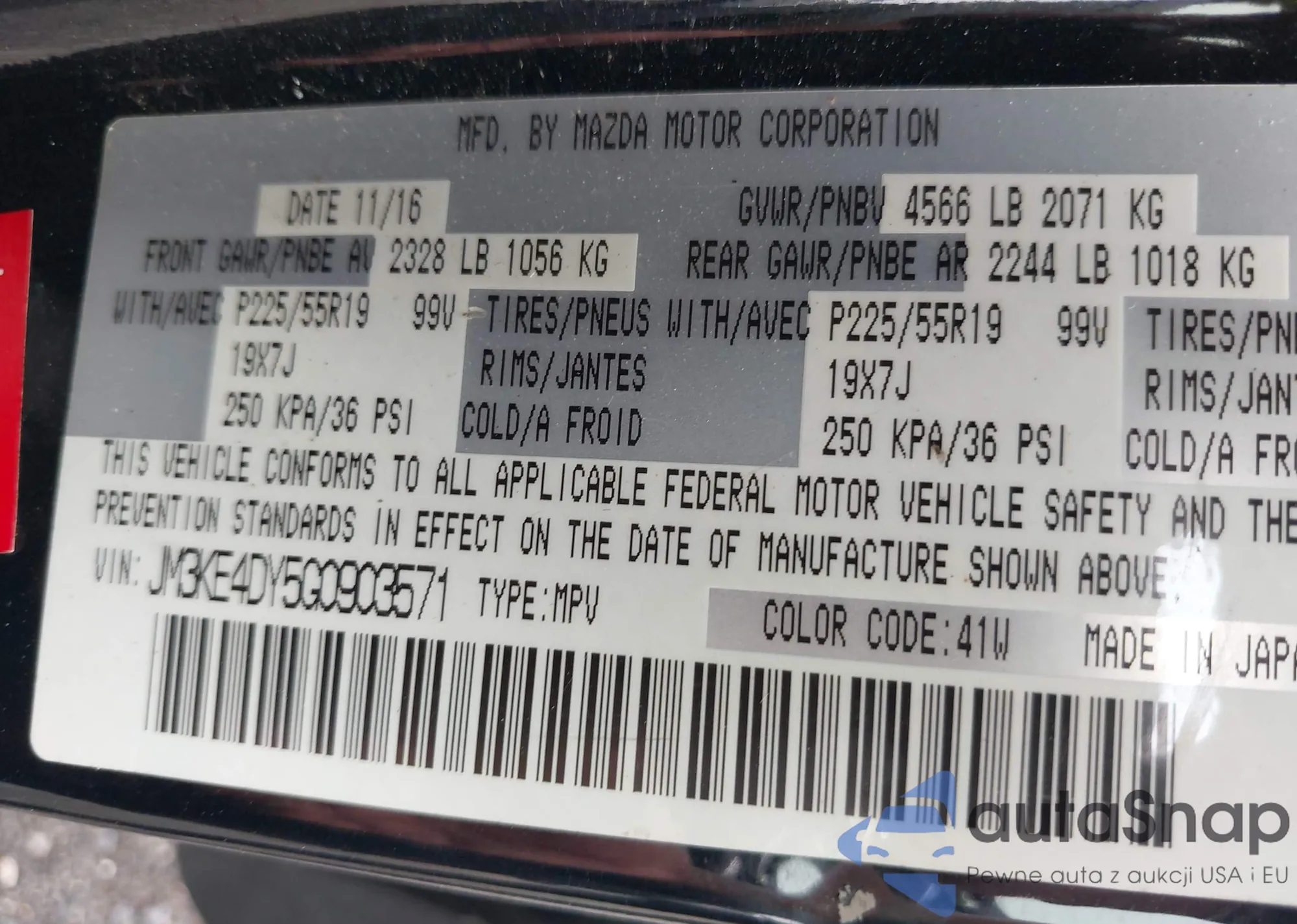 LOT: 43285708 VIN: JM3KE4DY5G0903571