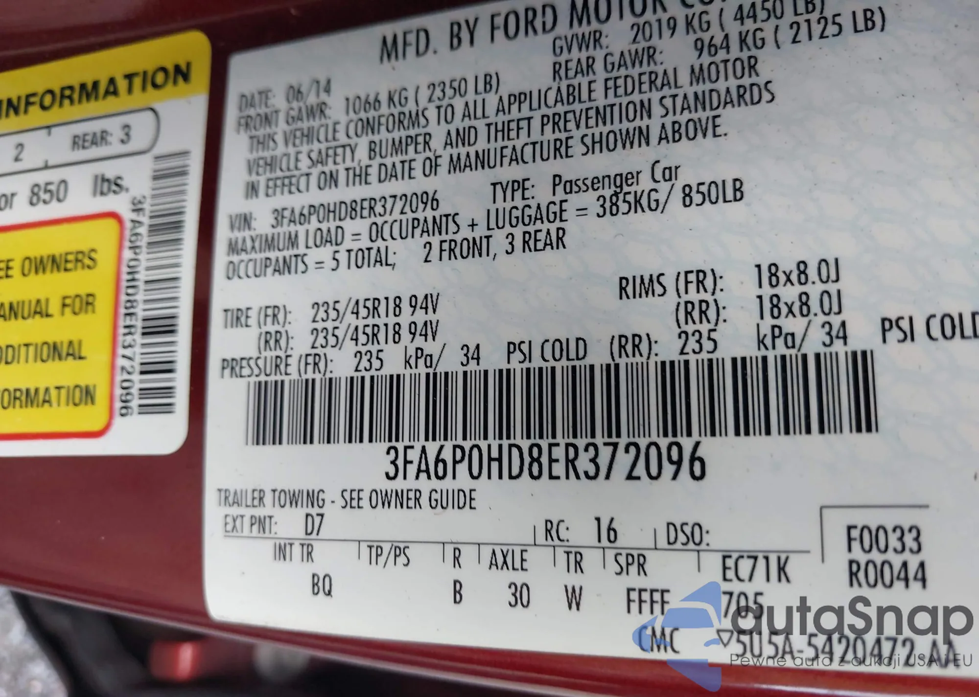 • VIN 3FA6P0HD8ER372096