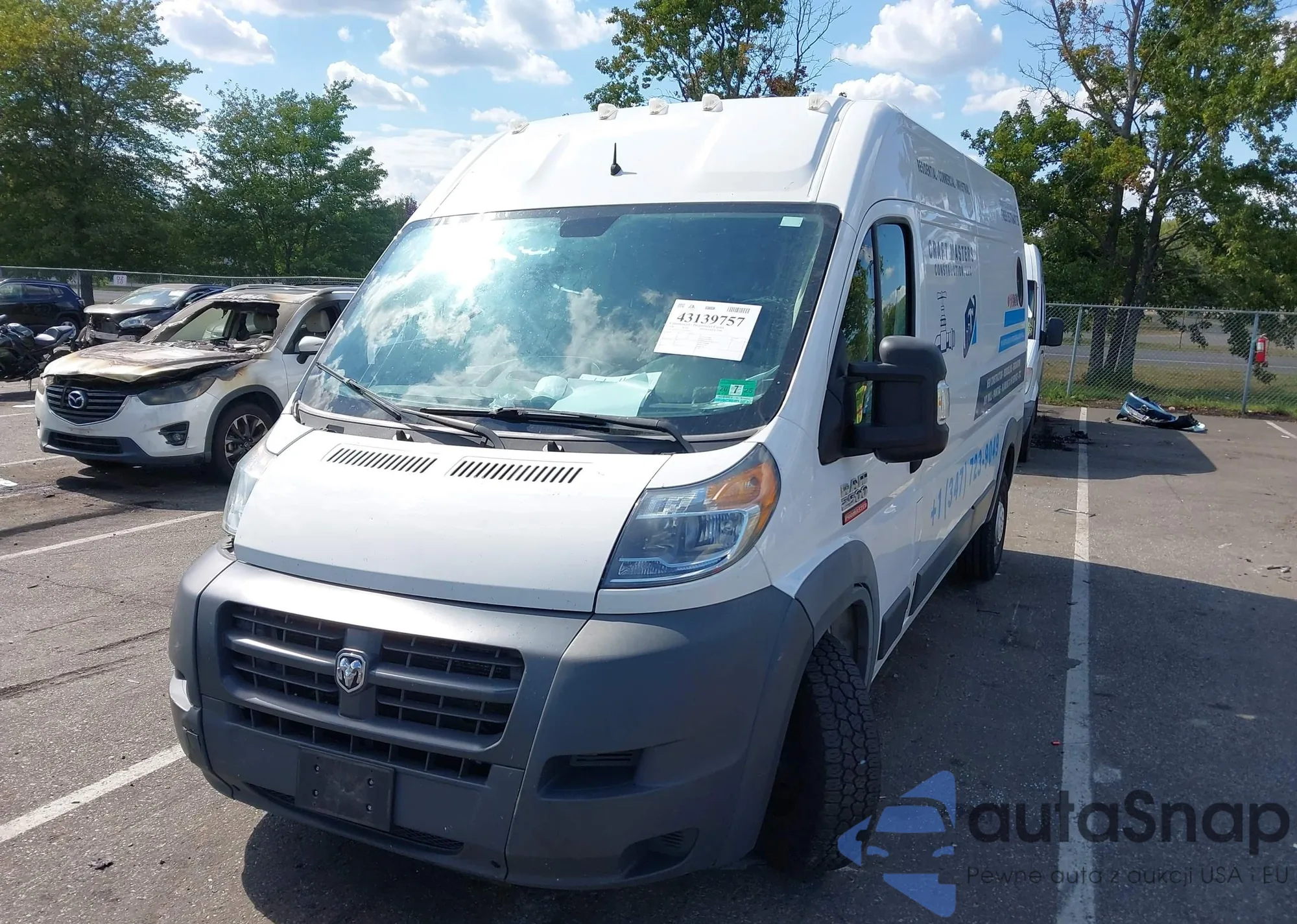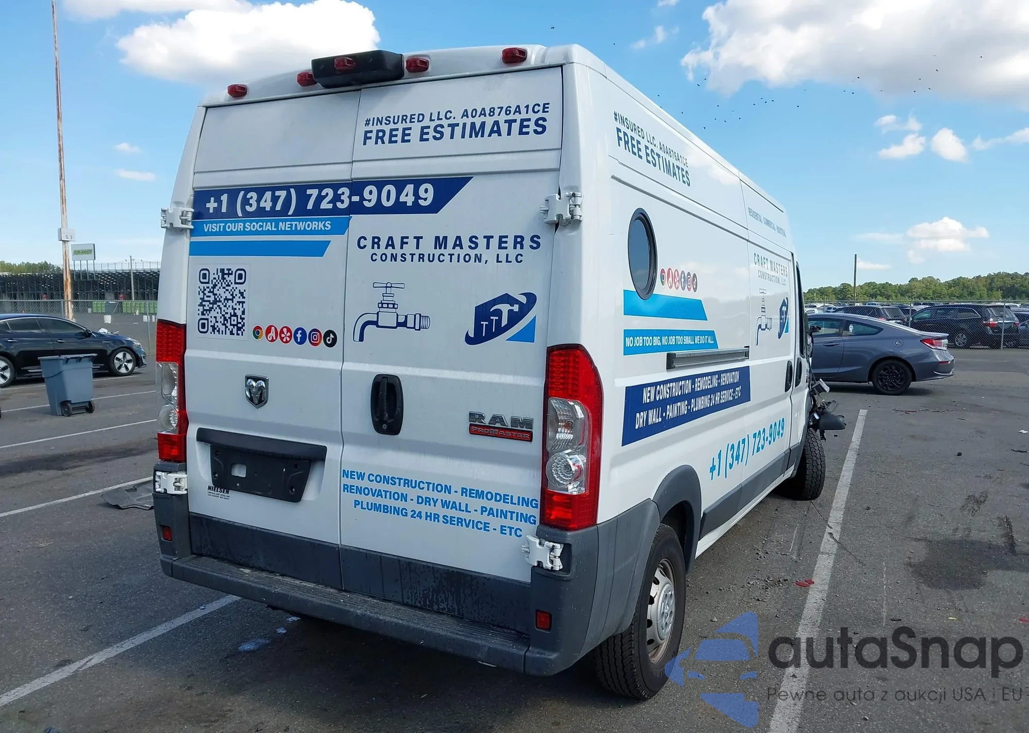 2018 Ram Promaster 2500 High Roof 159 Wb z USA, uszkodzony, nr VIN 3C6TRVDG7JE142546