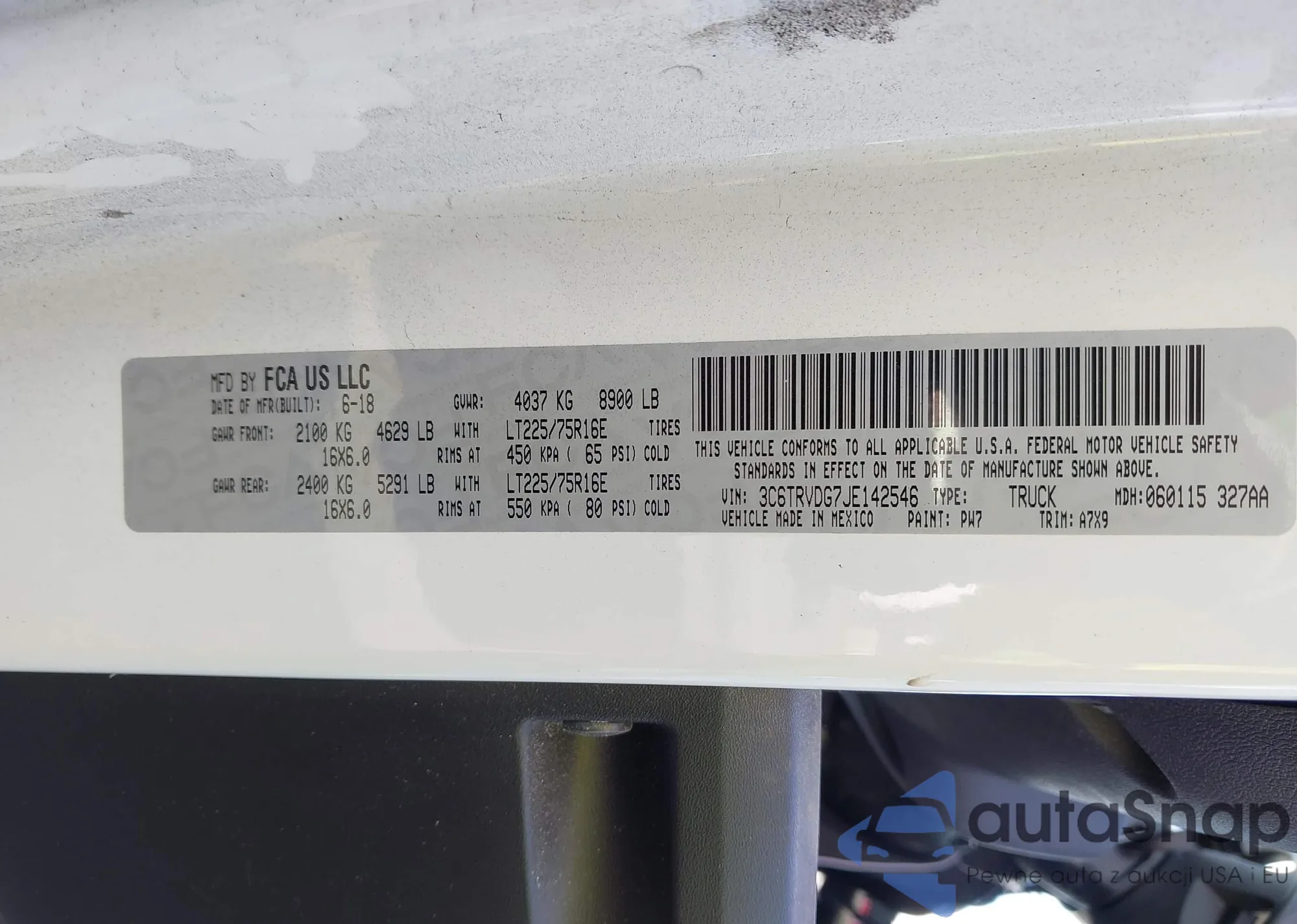 • VIN 3C6TRVDG7JE142546