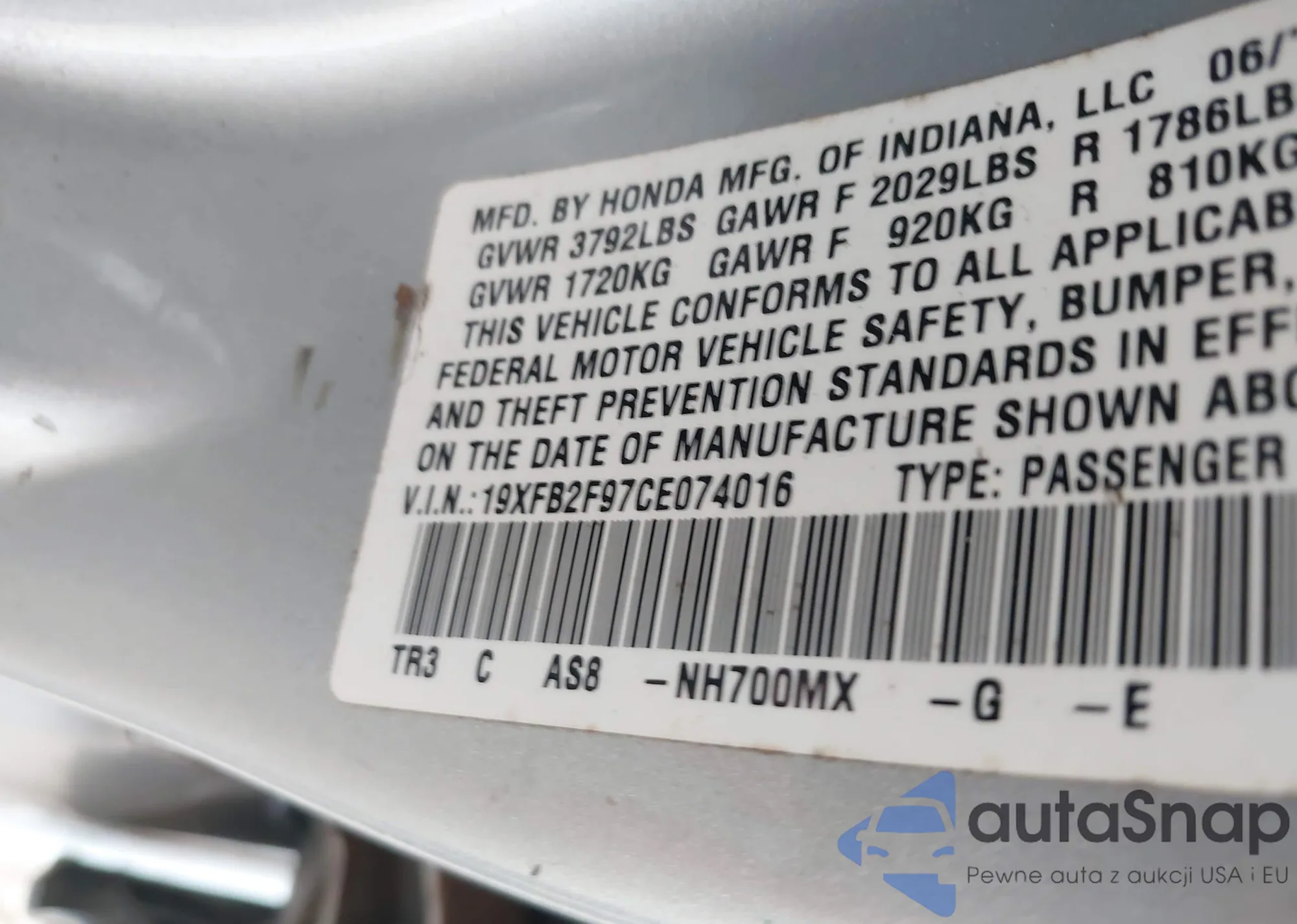 • VIN 19XFB2F97CE074016