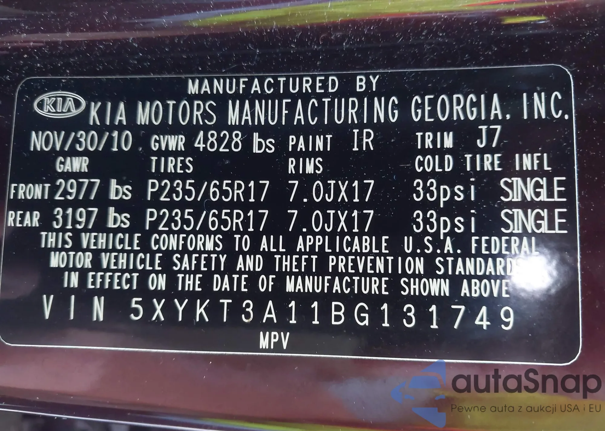 • VIN 5XYKT3A11BG131749