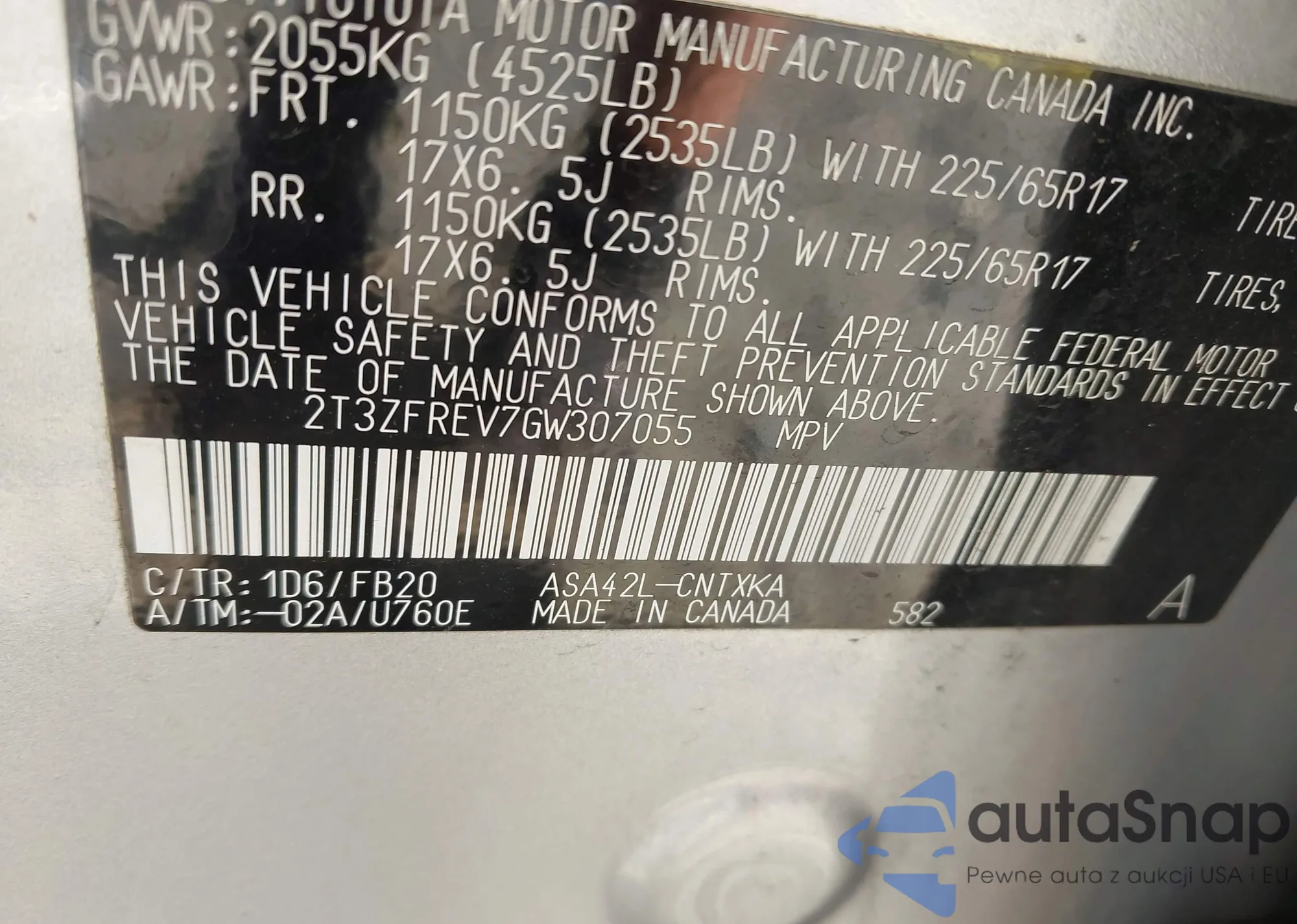 • VIN 2T3ZFREV7GW307055