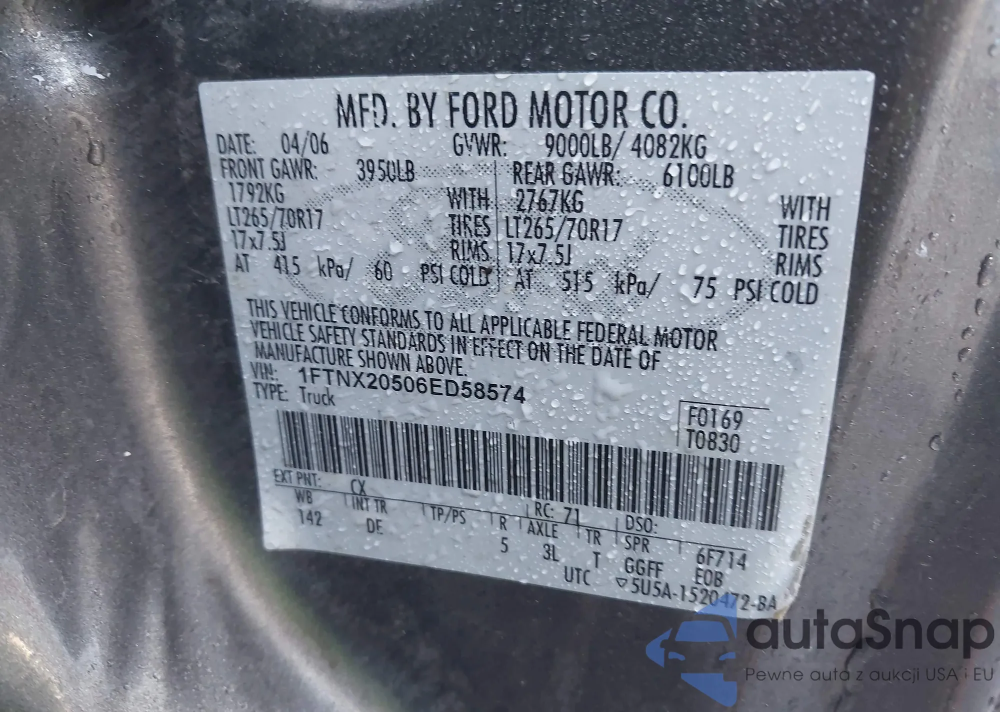 • VIN 1FTNX20506ED58574
