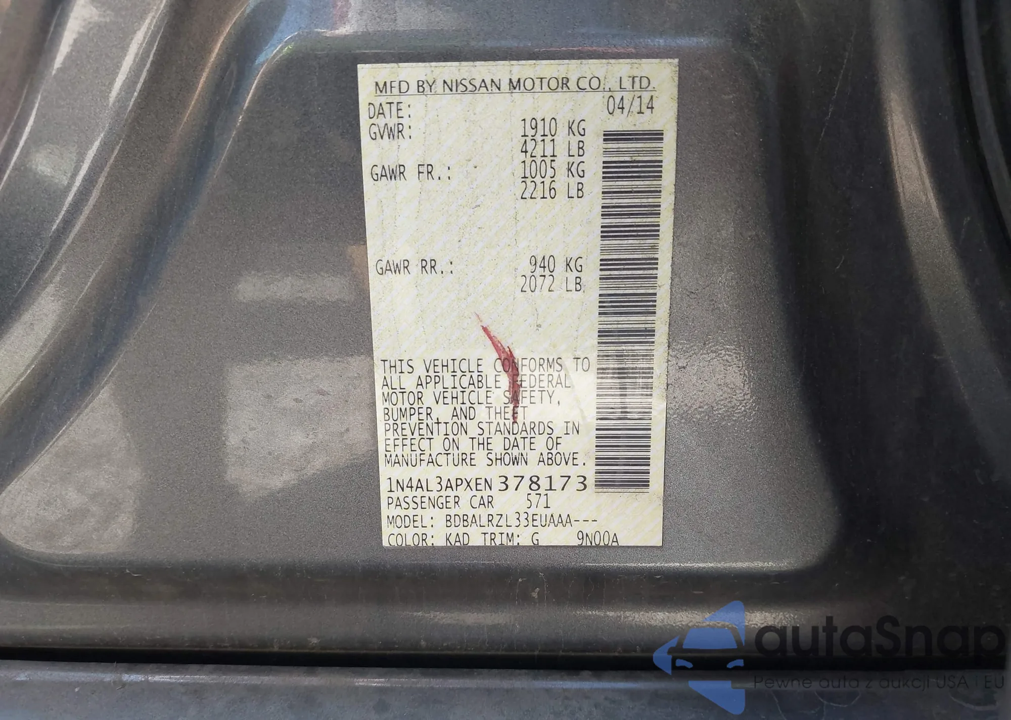 LOT: 43344473 VIN: JN1EV7EK1HM360377