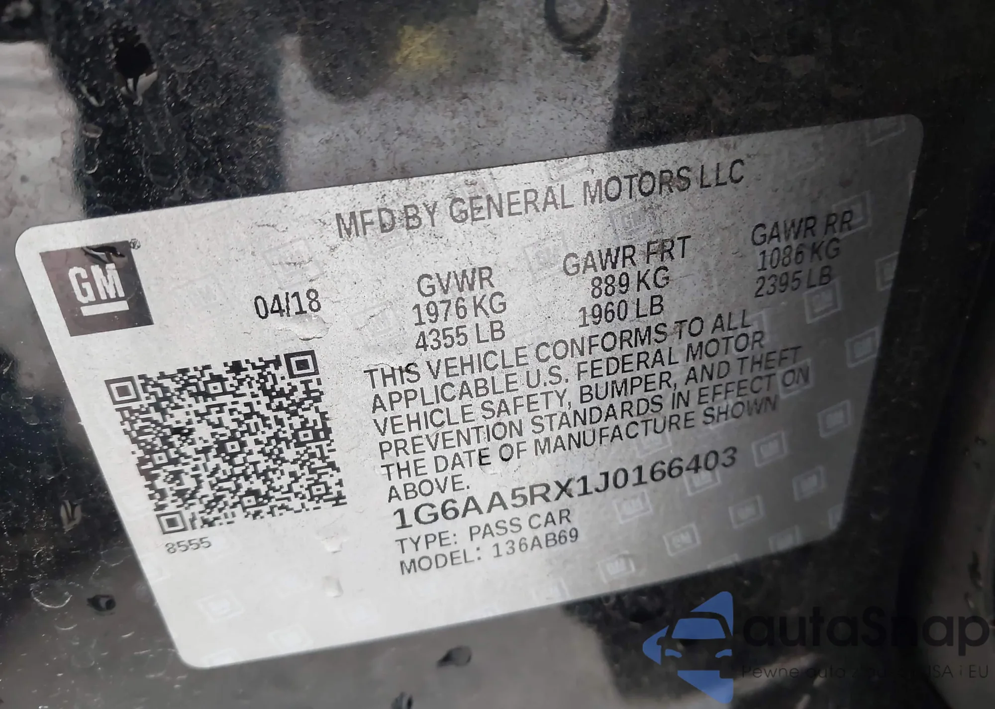 • VIN 1G6AA5RX1J0166403