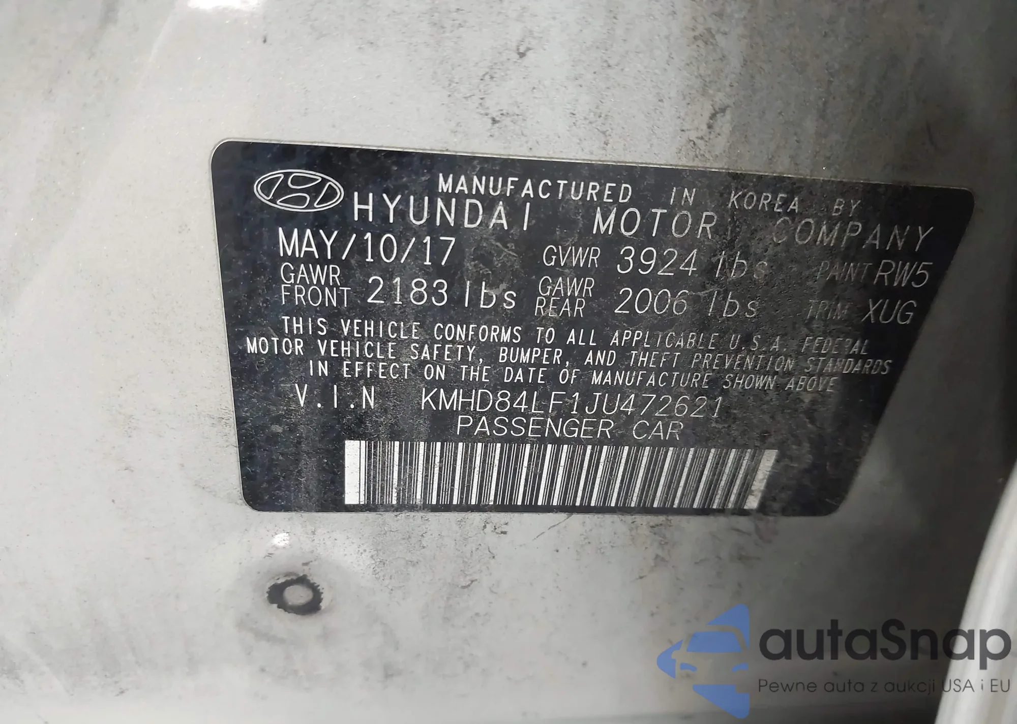 • VIN KMHD84LF1JU472621