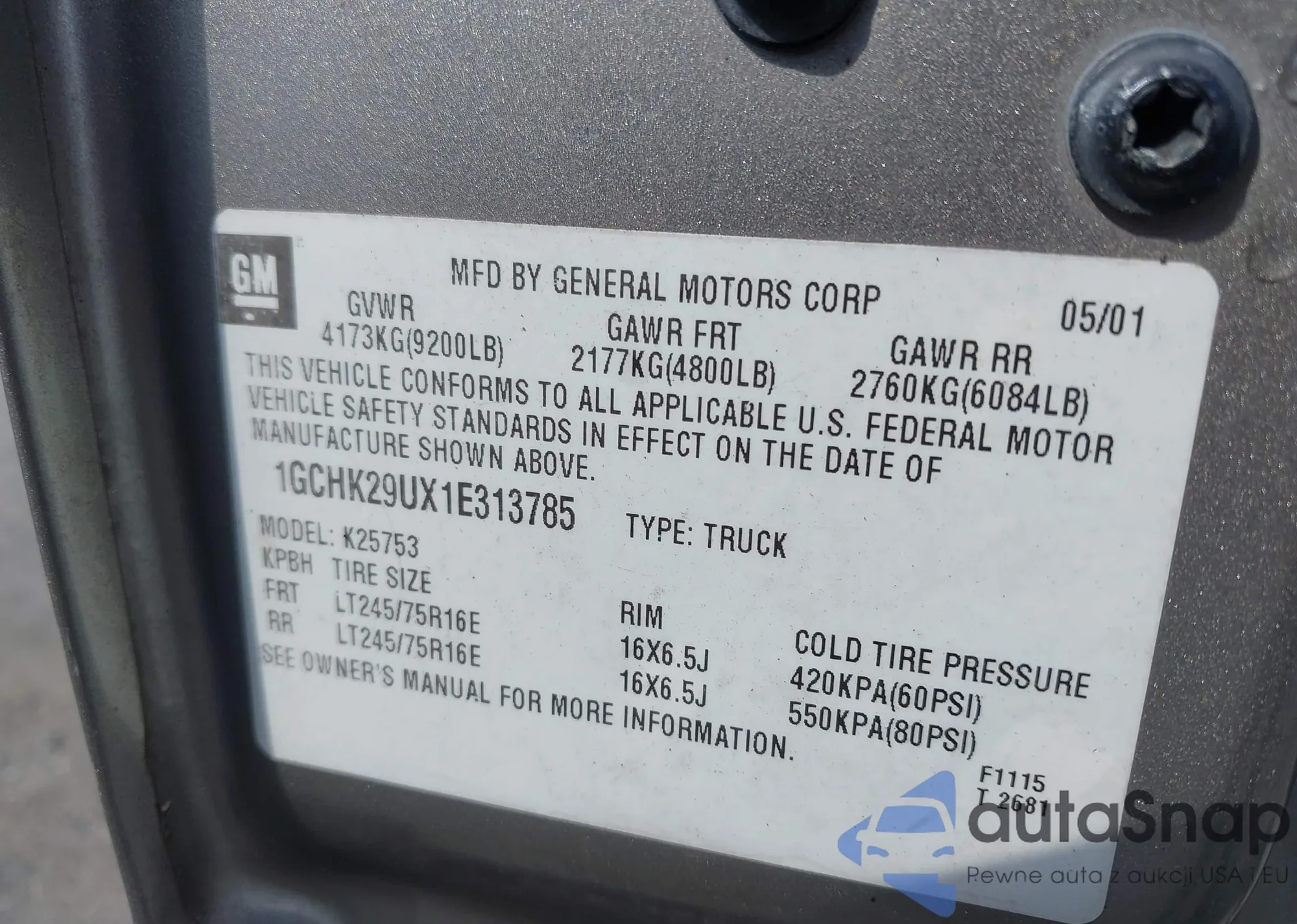 LOT: 43371352 VIN: 1GCHK29UX1E313785