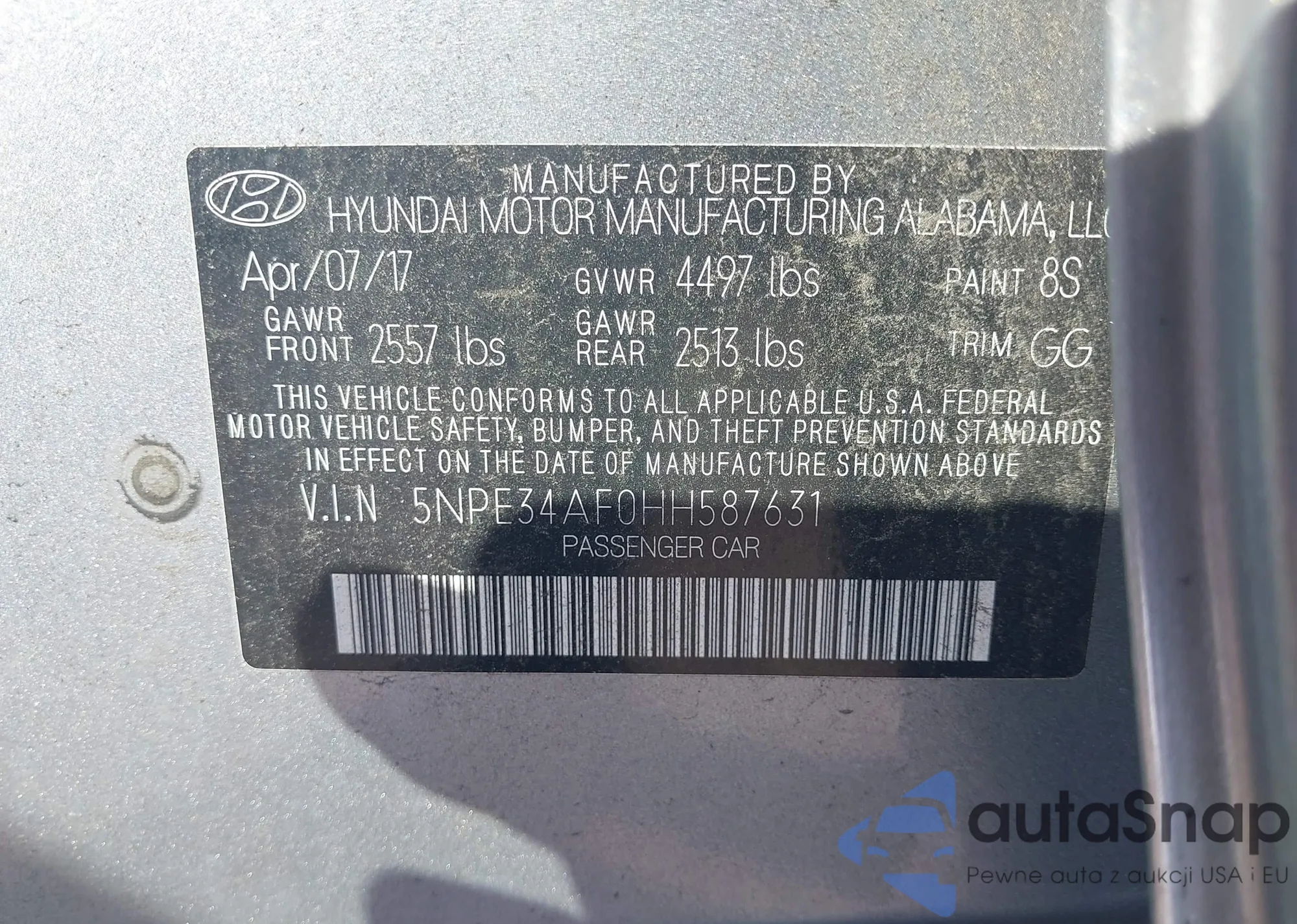• VIN 5NPD84LF9HH075991