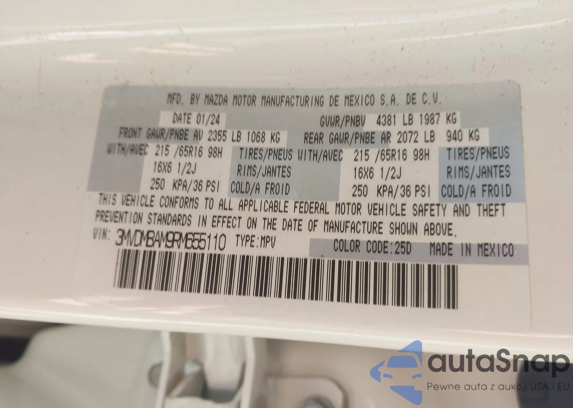 • VIN 3MEHM0HAXAR642066