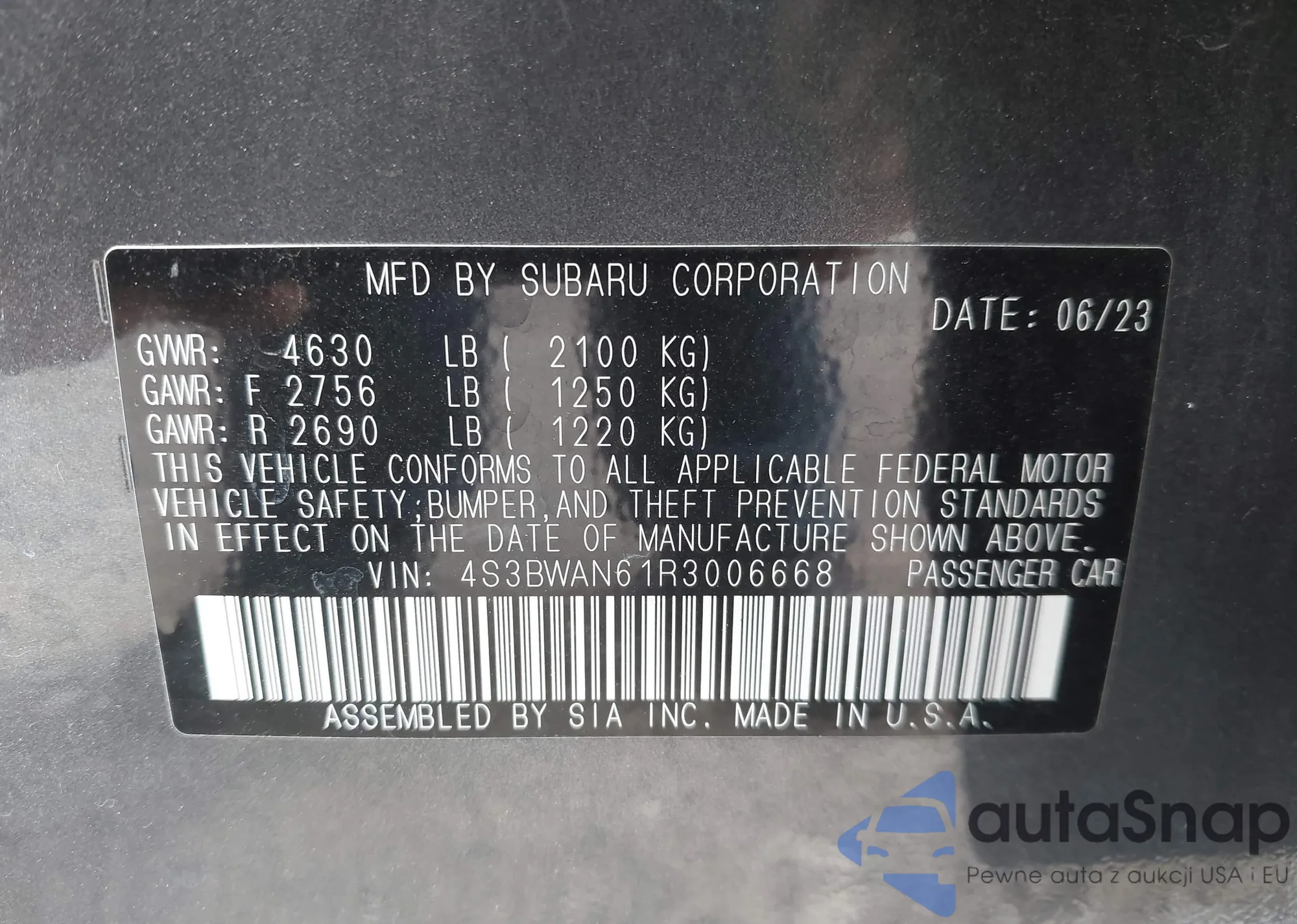 • VIN 4S3BWAN61R3006668