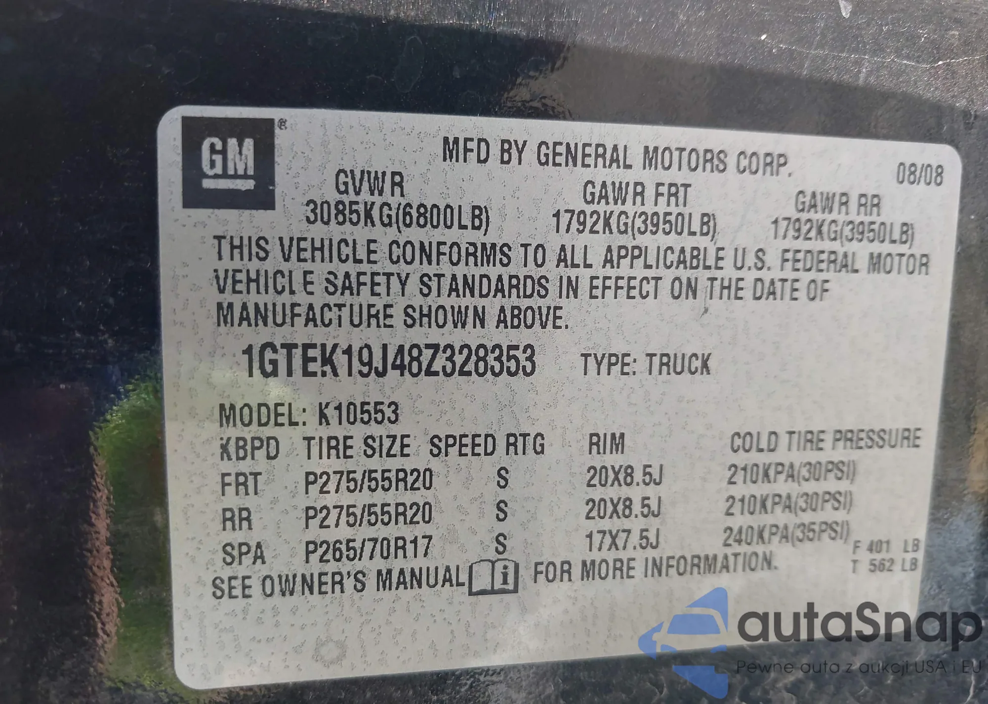 • VIN 1GTEK19J48Z328353